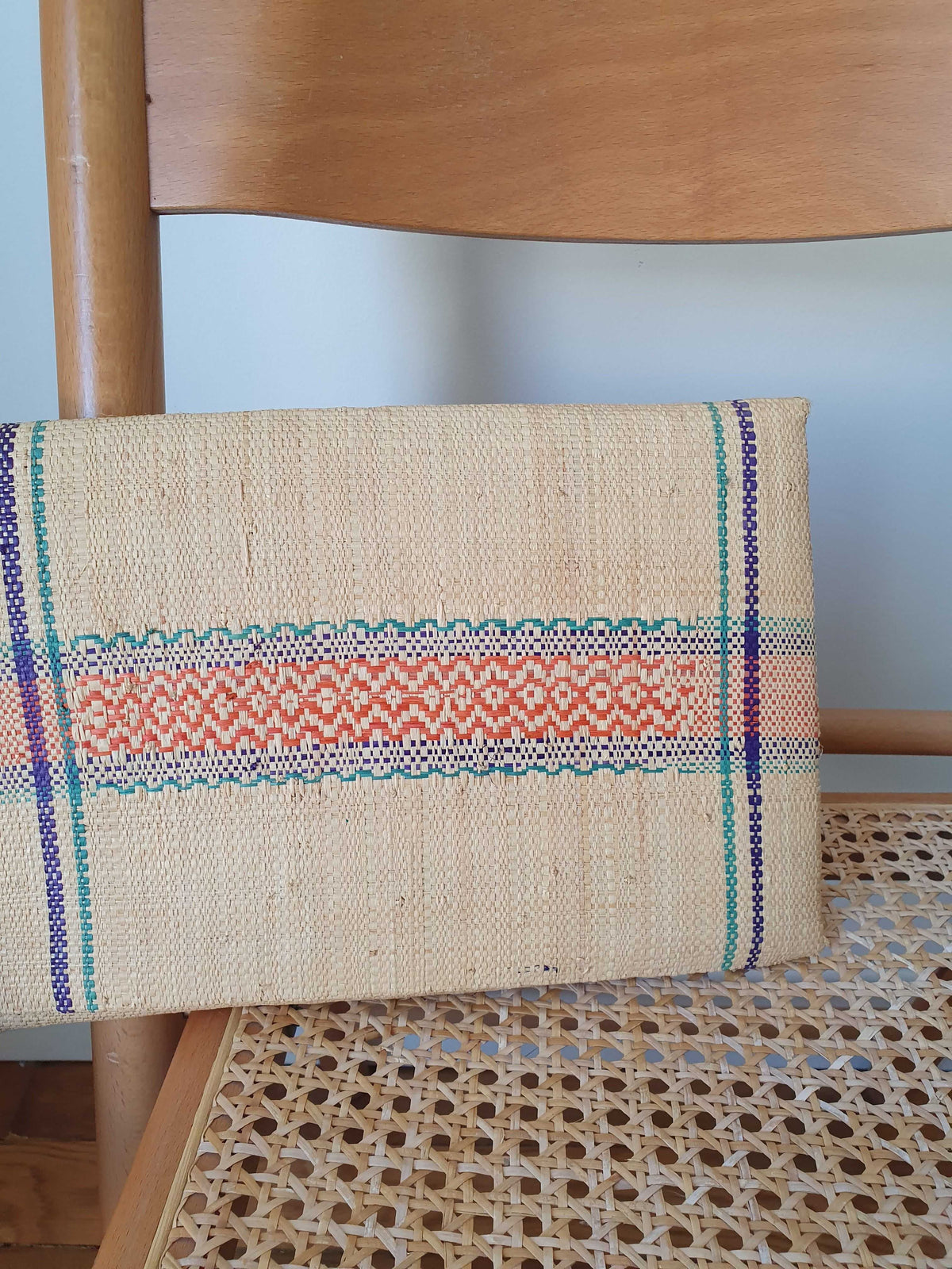 Unit price perBraided pouch. Orange, green and violet patterns.