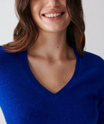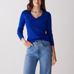 Pull V Cintre Classique Femme - Bleu Delphinium