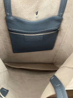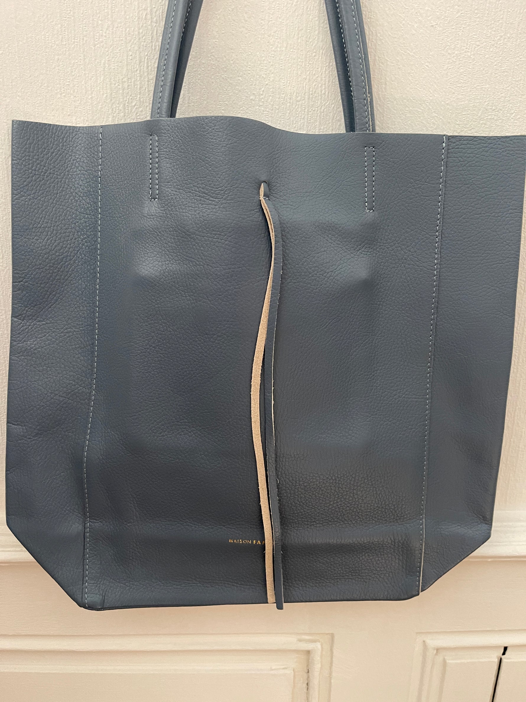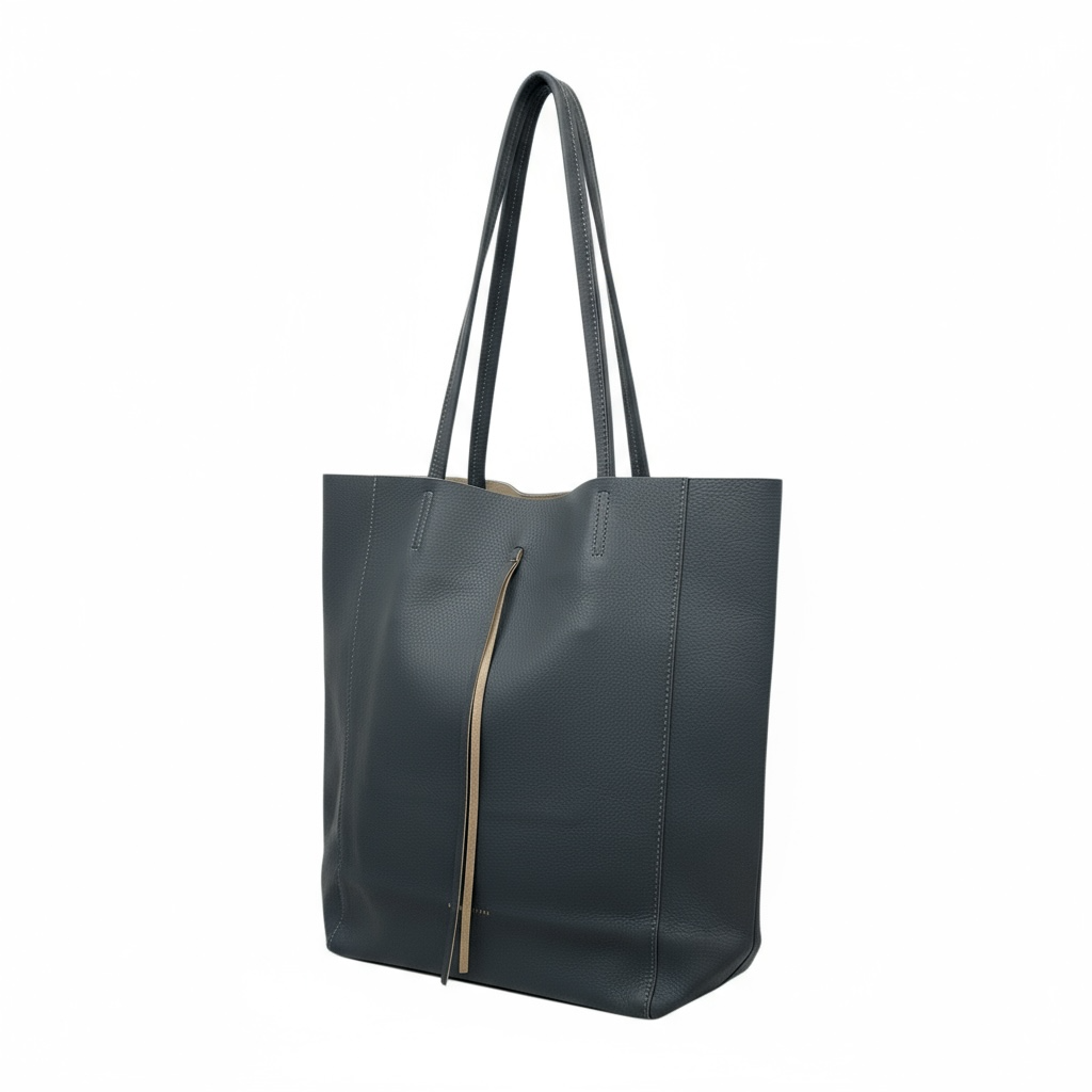 Combine practicality and elegance with this supple cowhide leather tote bag, handcrafted in Italy. Its subtle and refined blue hue makes it a must-have that easily complements all your outfits. Featuring comfortable handles, it can be carried over the shoulder. The spacious interior includes a zippered pocket to keep your essentials secure and a reinforced base for added stability. This minimalist yet sophisticated design is perfect for busy days or weekend getaways. Dimensions: 59 x 28 x 14 cm. Made in Italy. Material: 100% supple cowhide leather. Care: Dry clean