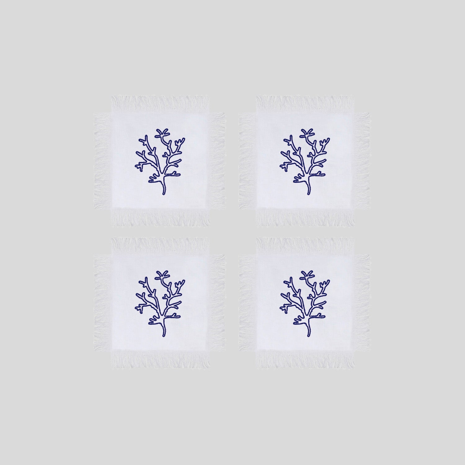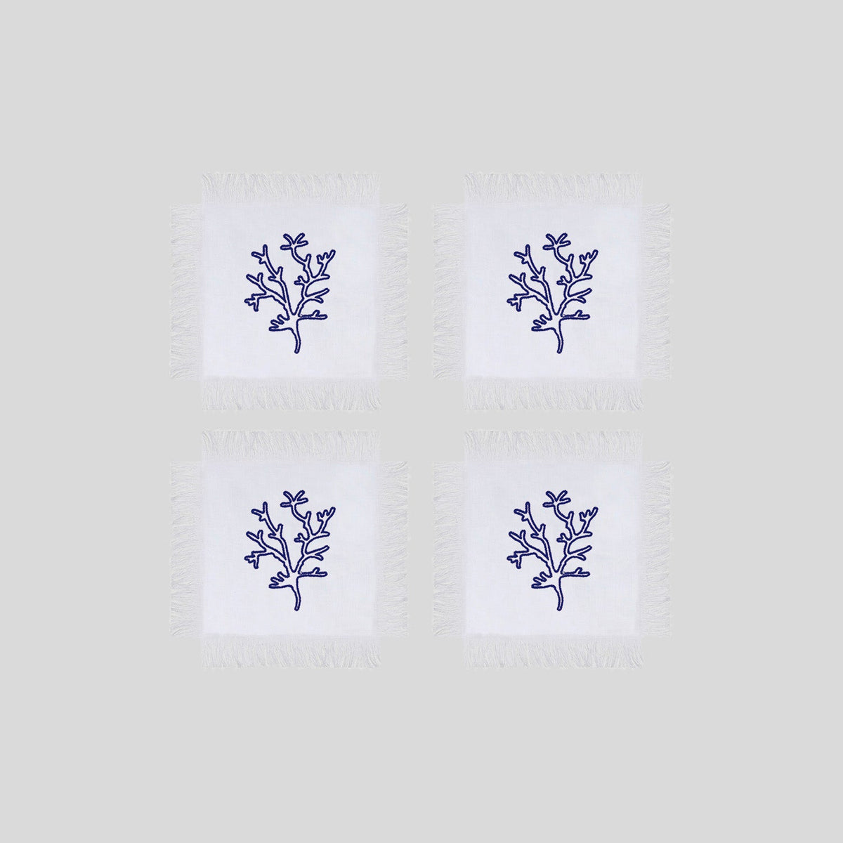 Unit price perSottobicchieri artigianali ricamati in Italia con cotone makò su lino certificato Masters of Linen.