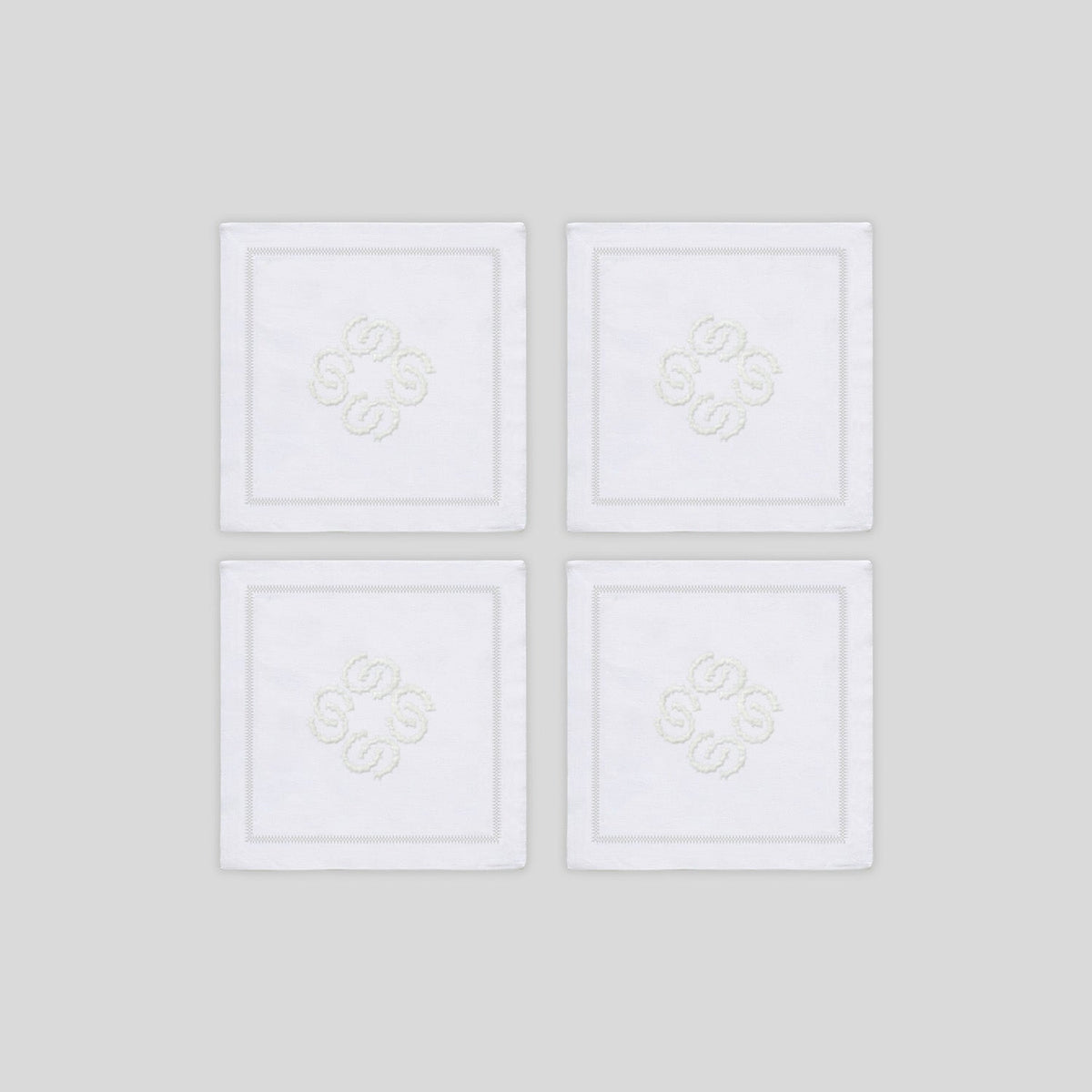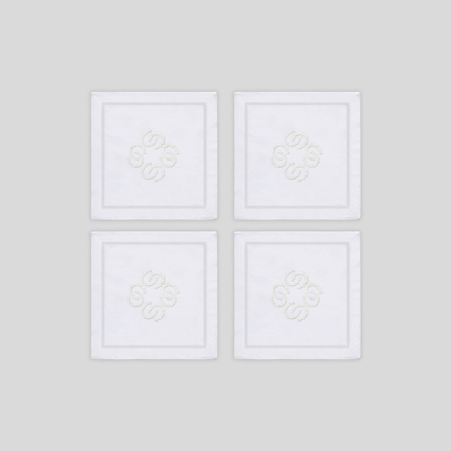 Unit price perSottobicchieri artigianali ricamati in Italia con cotone makò su lino certificato Masters of Linen.