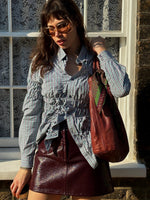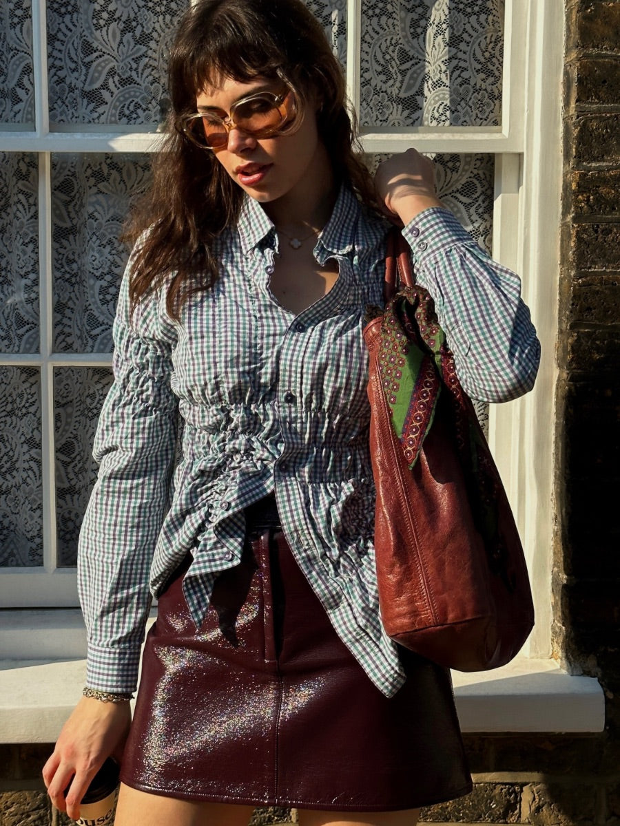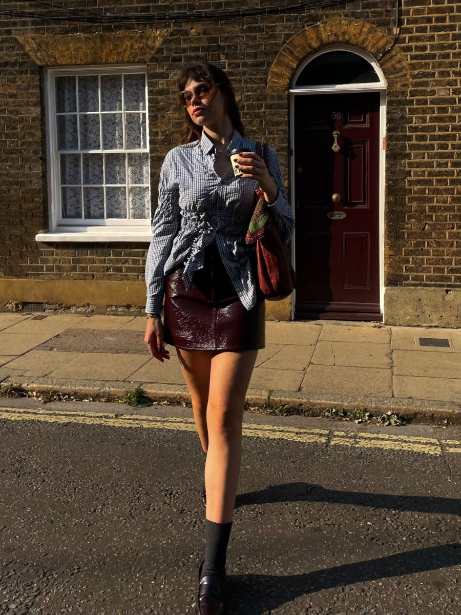 We've reinvented the classic button-down shirt with gathered details that offer a flattering finish. The Tia Upcycled Check Shirt in black stands out thanks to its gathered texture, which enhances both the shirt's look and comfort.