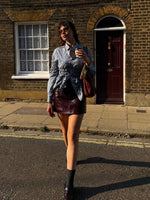 Upcycled “Tia” Checkered Shirt in Black