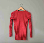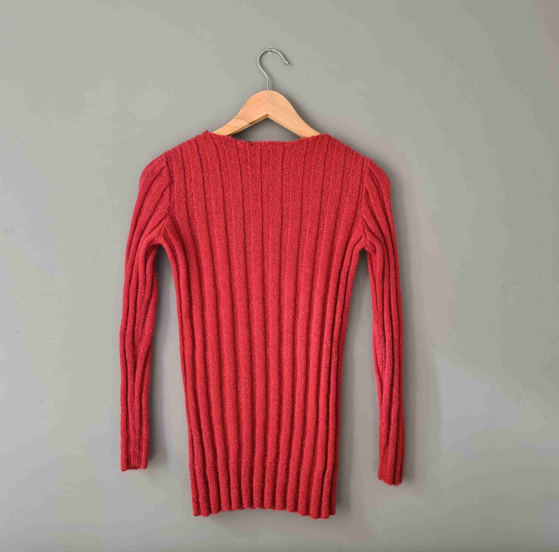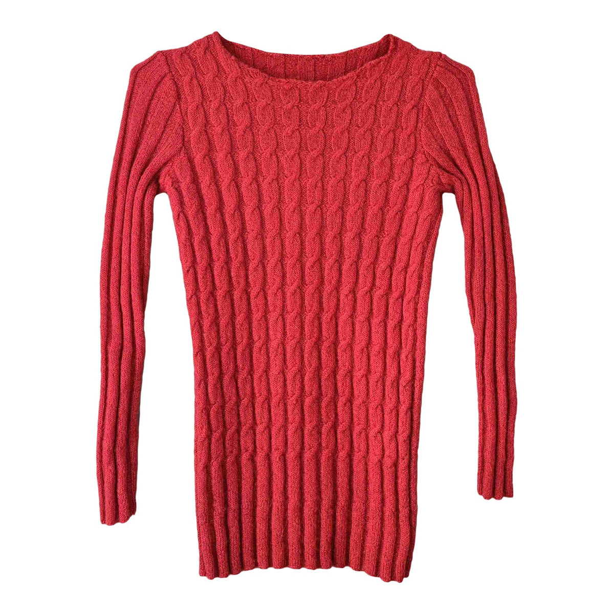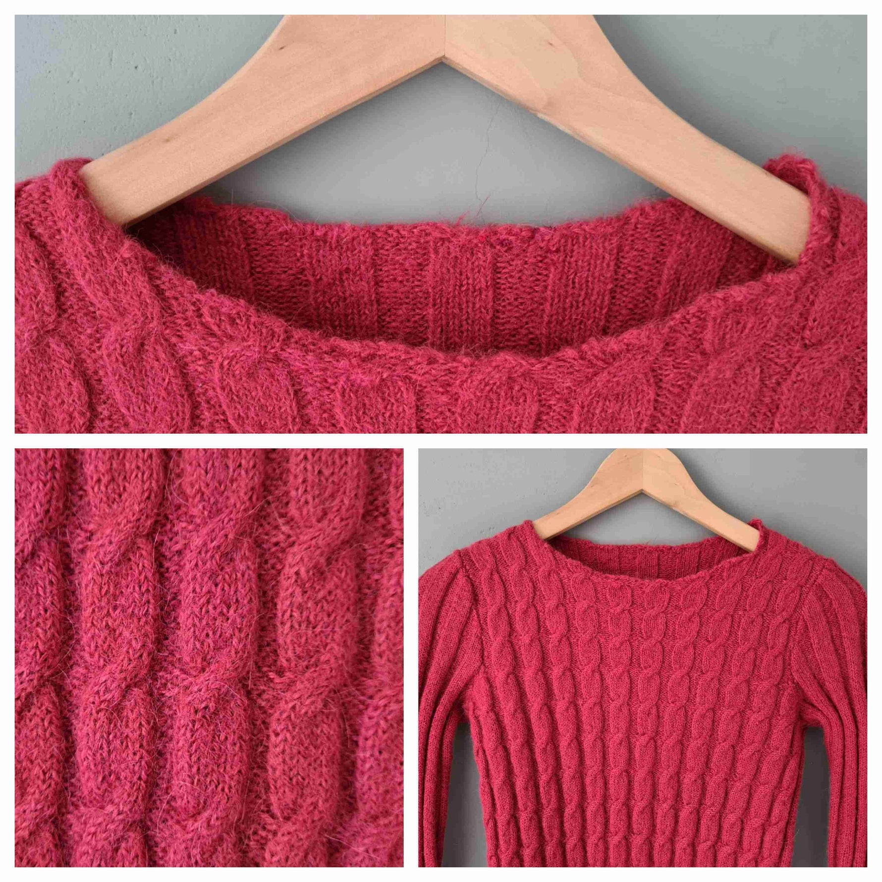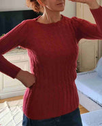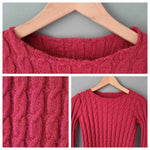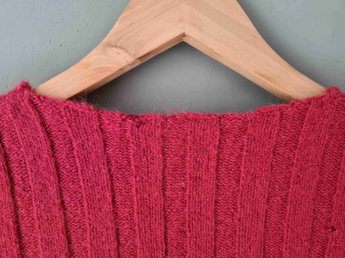Knitted top in twisted yarn, pink wool, ribbed effect on the base, back and sleeves, round neck. Contains soft alpaca-type wool. Model is wearing a size 36 in the photos. Unique, hand-knitted piece.