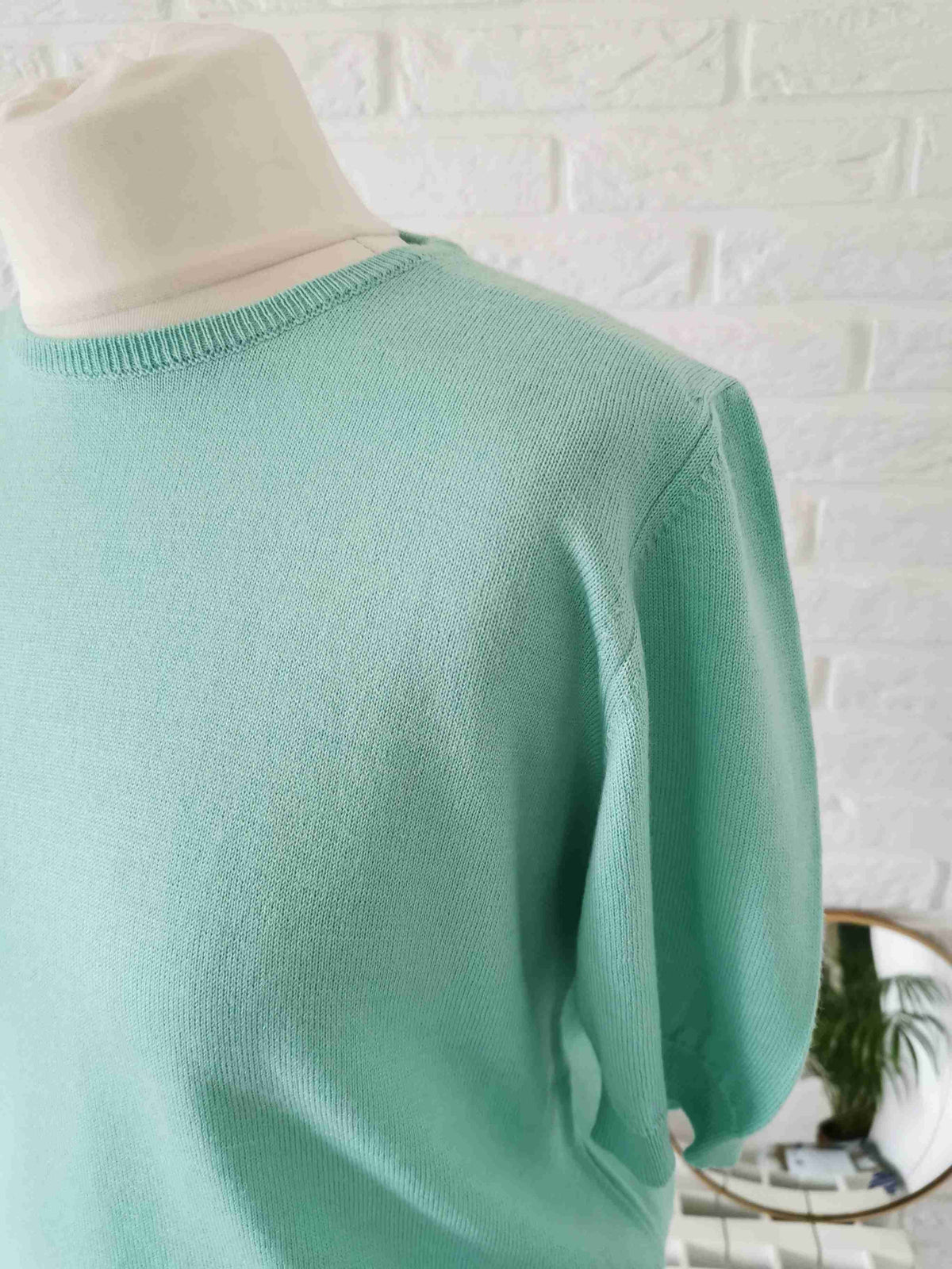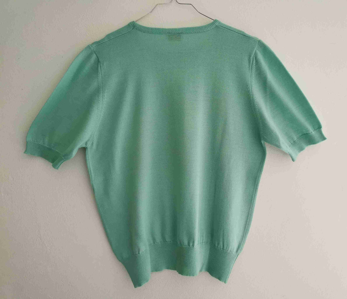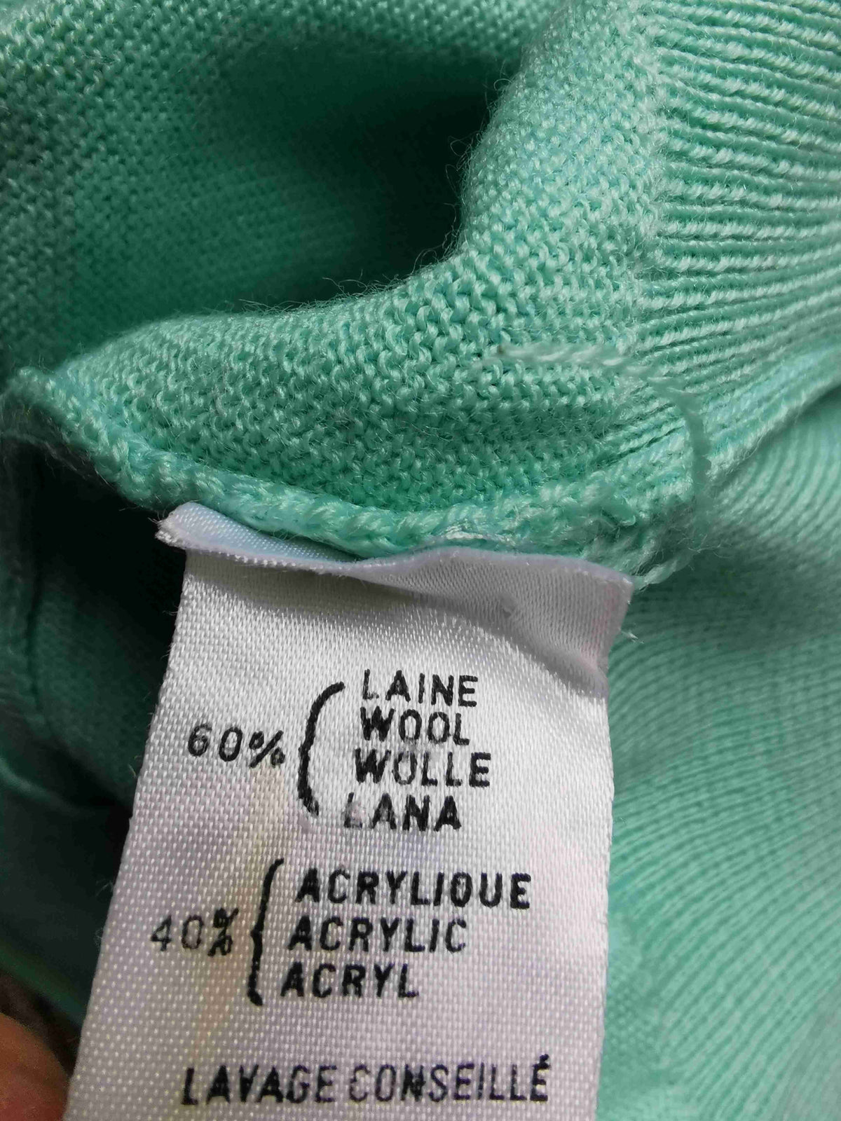 Made of a light green wool blend.