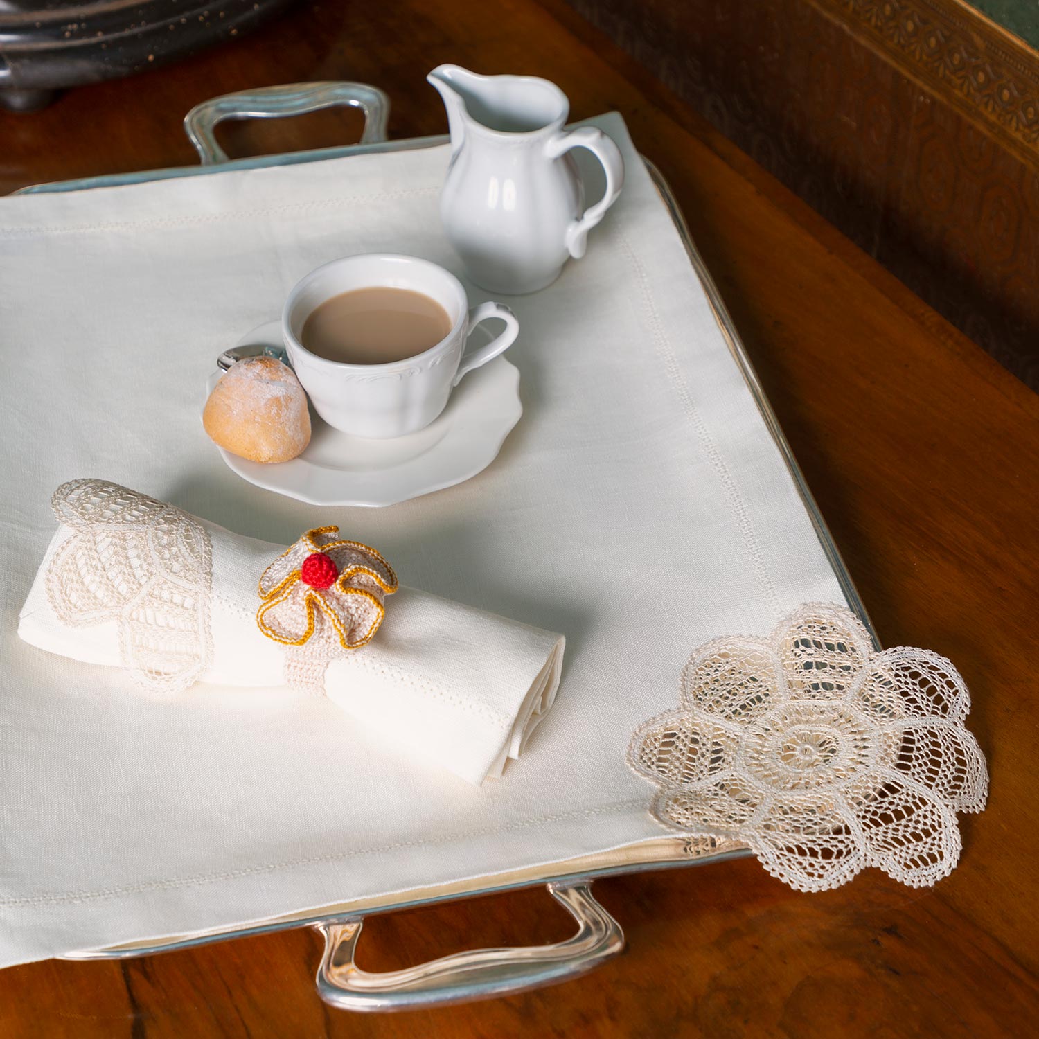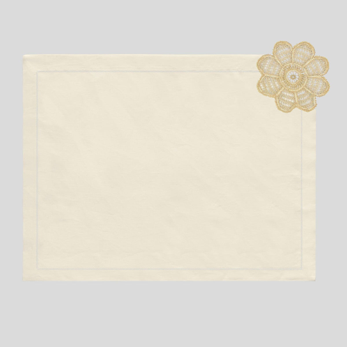 Tovaglietta artigianale ricamato a mano in 100 ore di lavoro su lino certificato Masters of Linen.