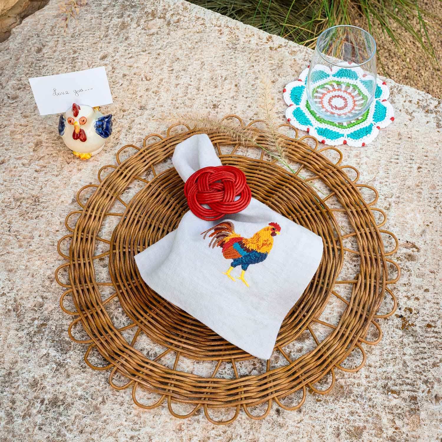 Vi consigliamo di abbinare questi tovaglioli con la nostra tovaglia Gallo per creare la vostra tavola perfetta.