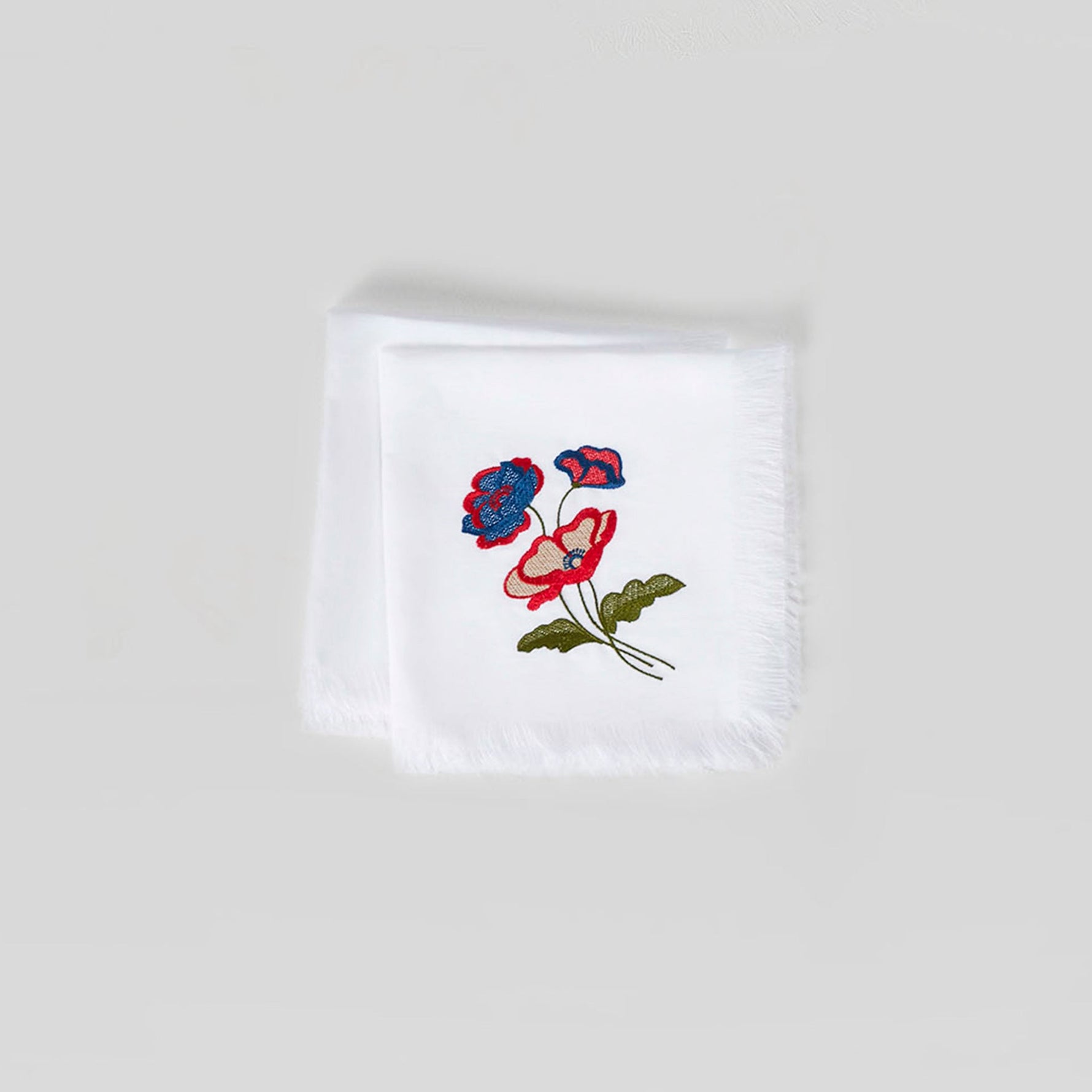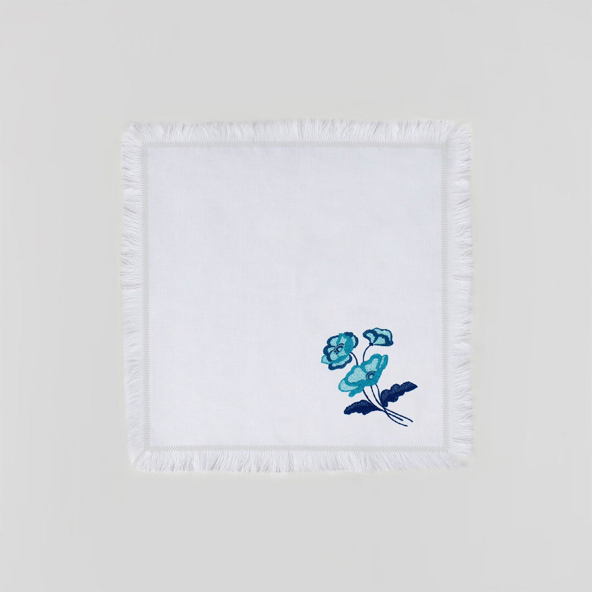 Tovagliolo artigianale ricamato in Italia con cotone makò su lino certificato Masters of linen.