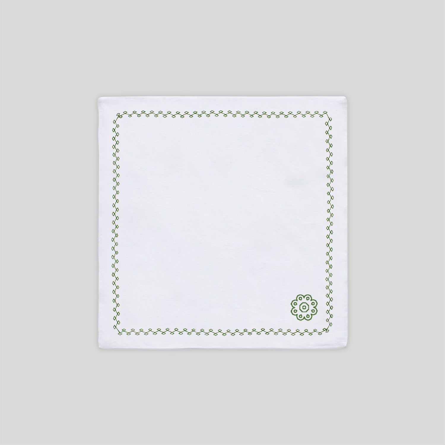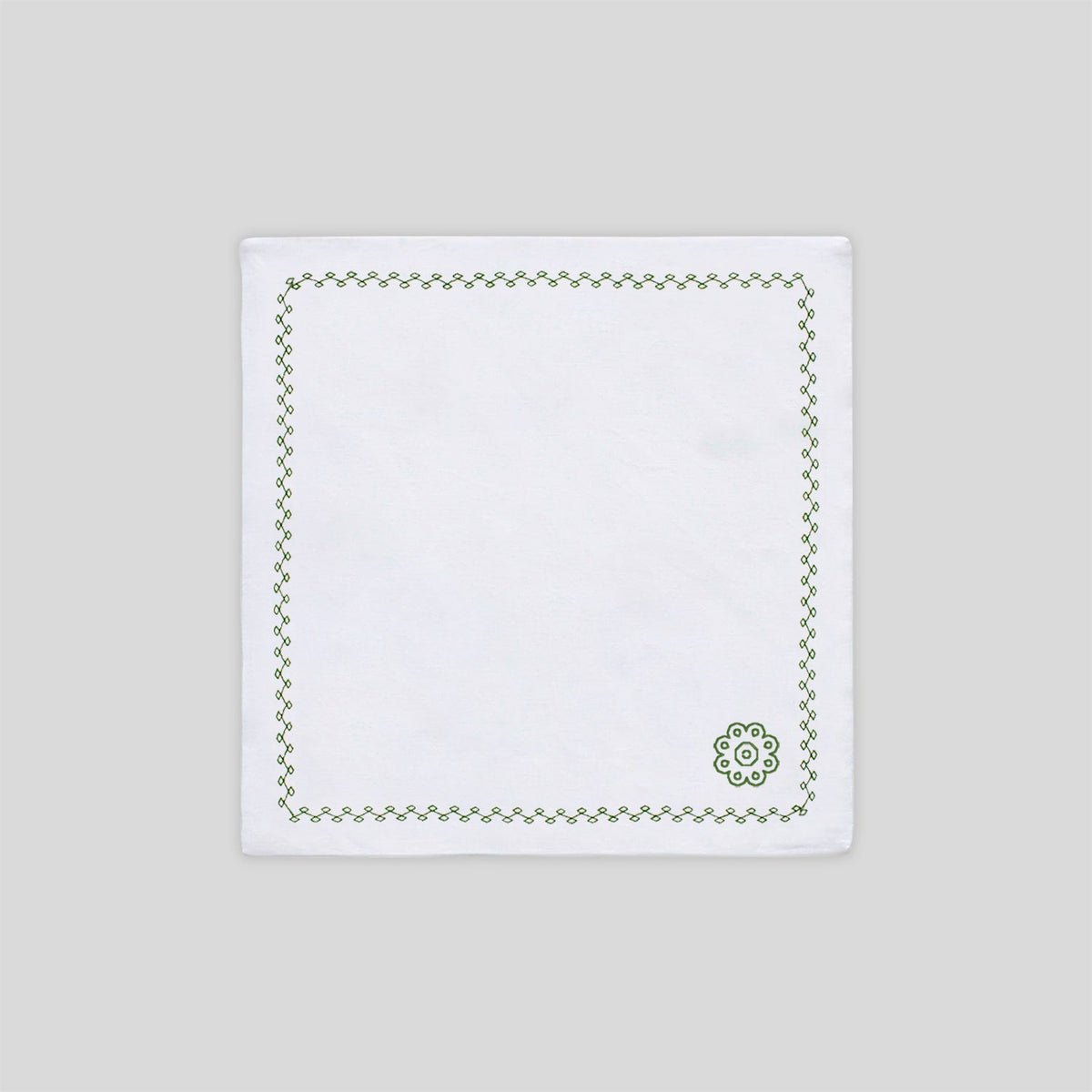 Tovagliolo artigianale ricamato in Italia con cotone makò su lino certificato Masters of linen.