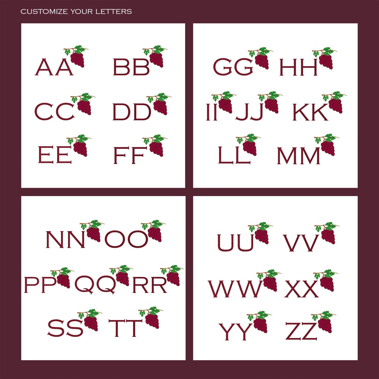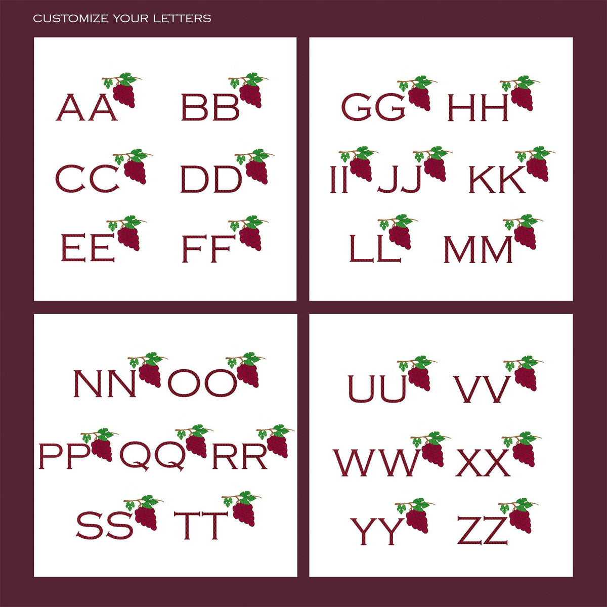 Il focus del ricamo è l'uva, uno dei prodotti più straordinari che la Terra Pugliese ci offre. I tre vitigni autoctoni in Puglia sono: Negramaro, Nero di Troia e Primitivo.