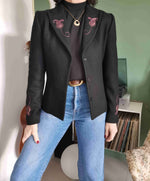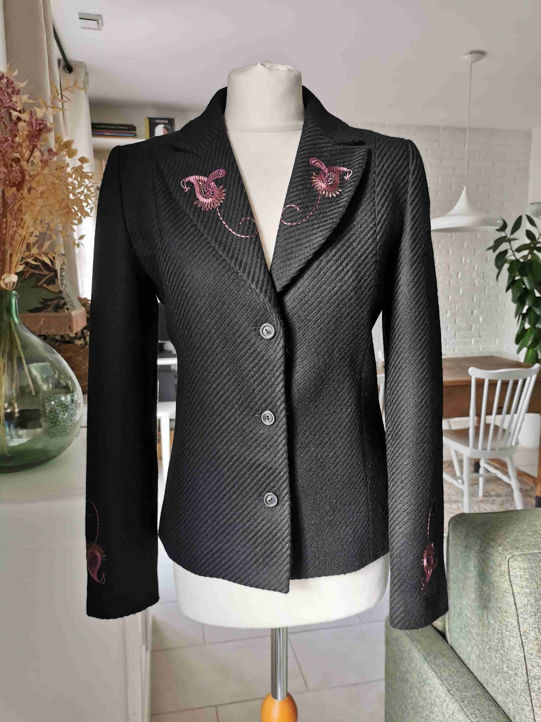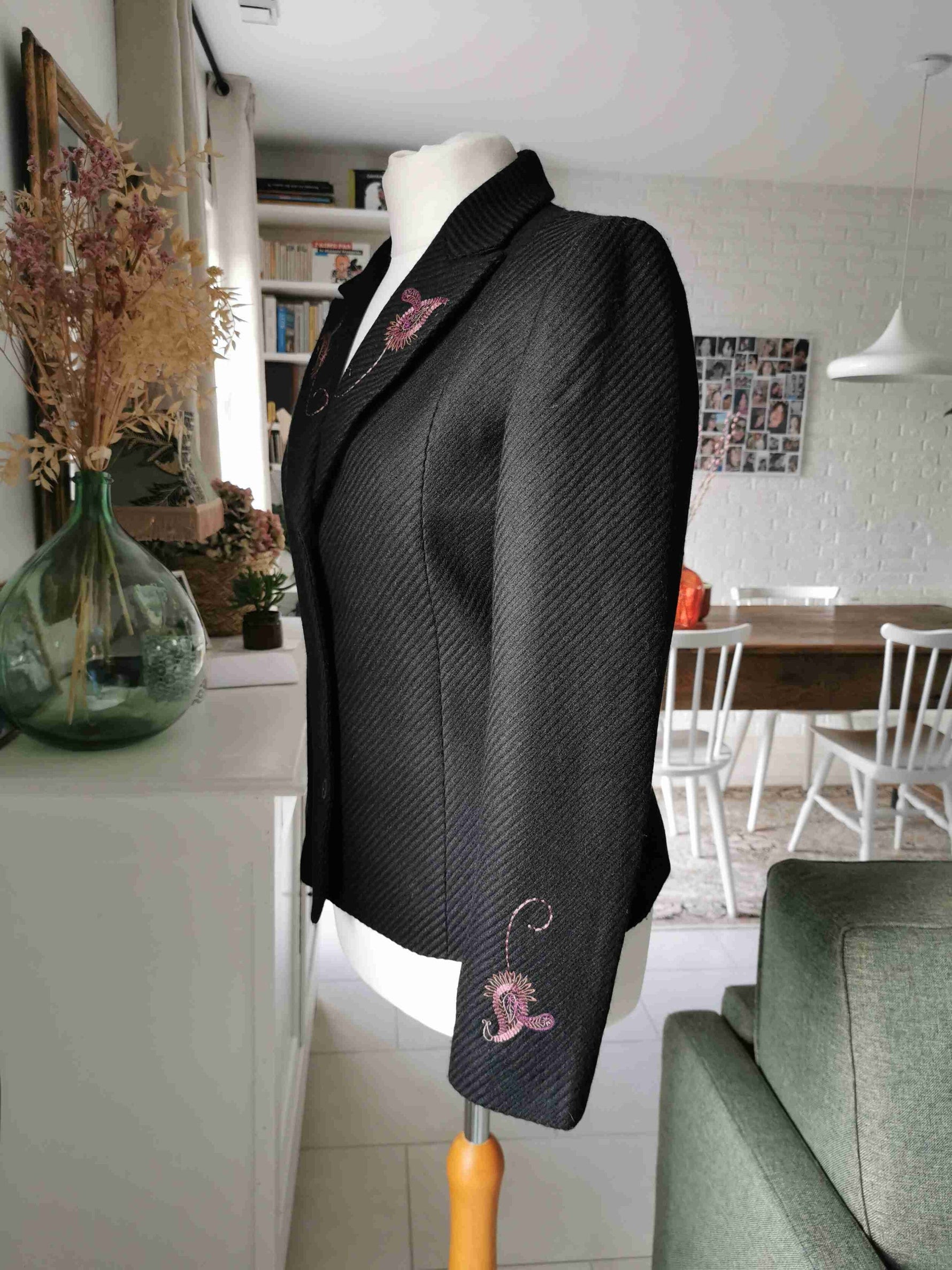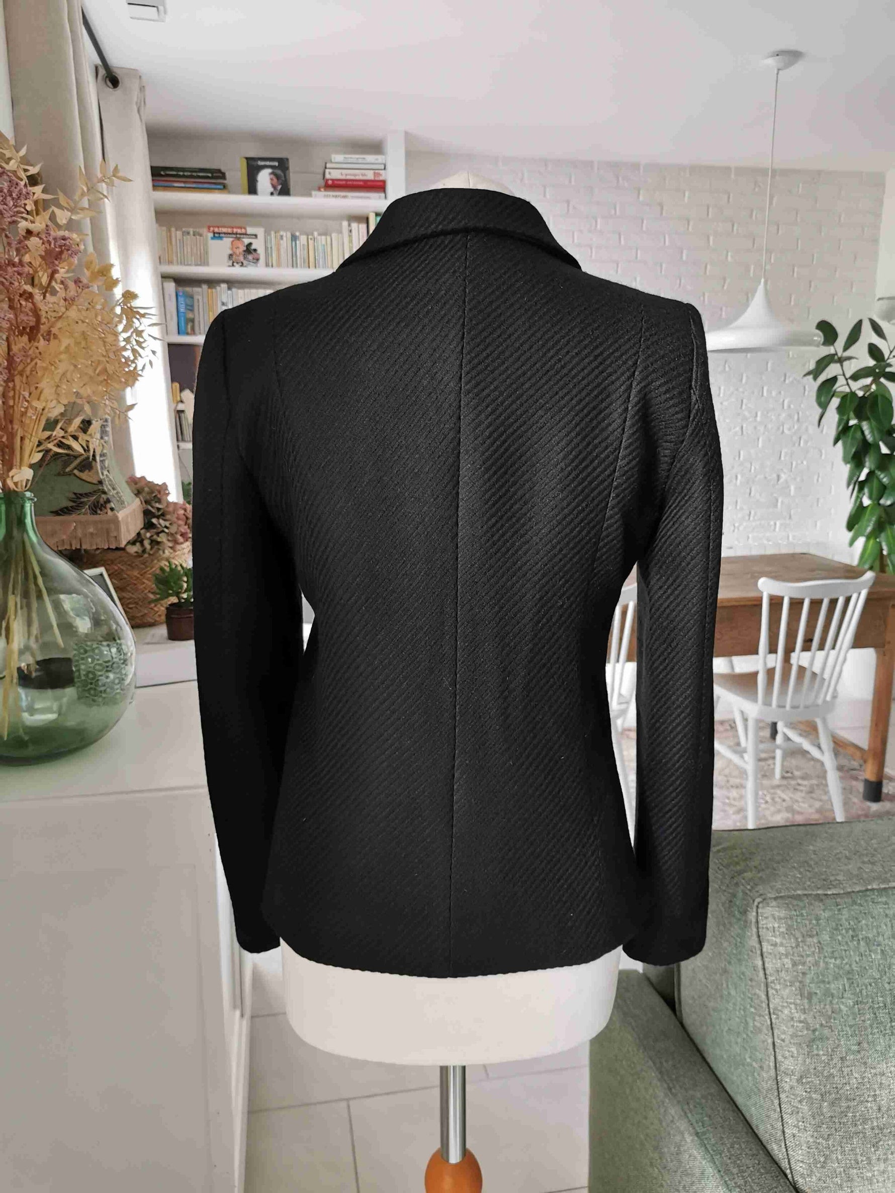 Short jacket in pure black wool, Made in France