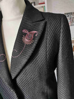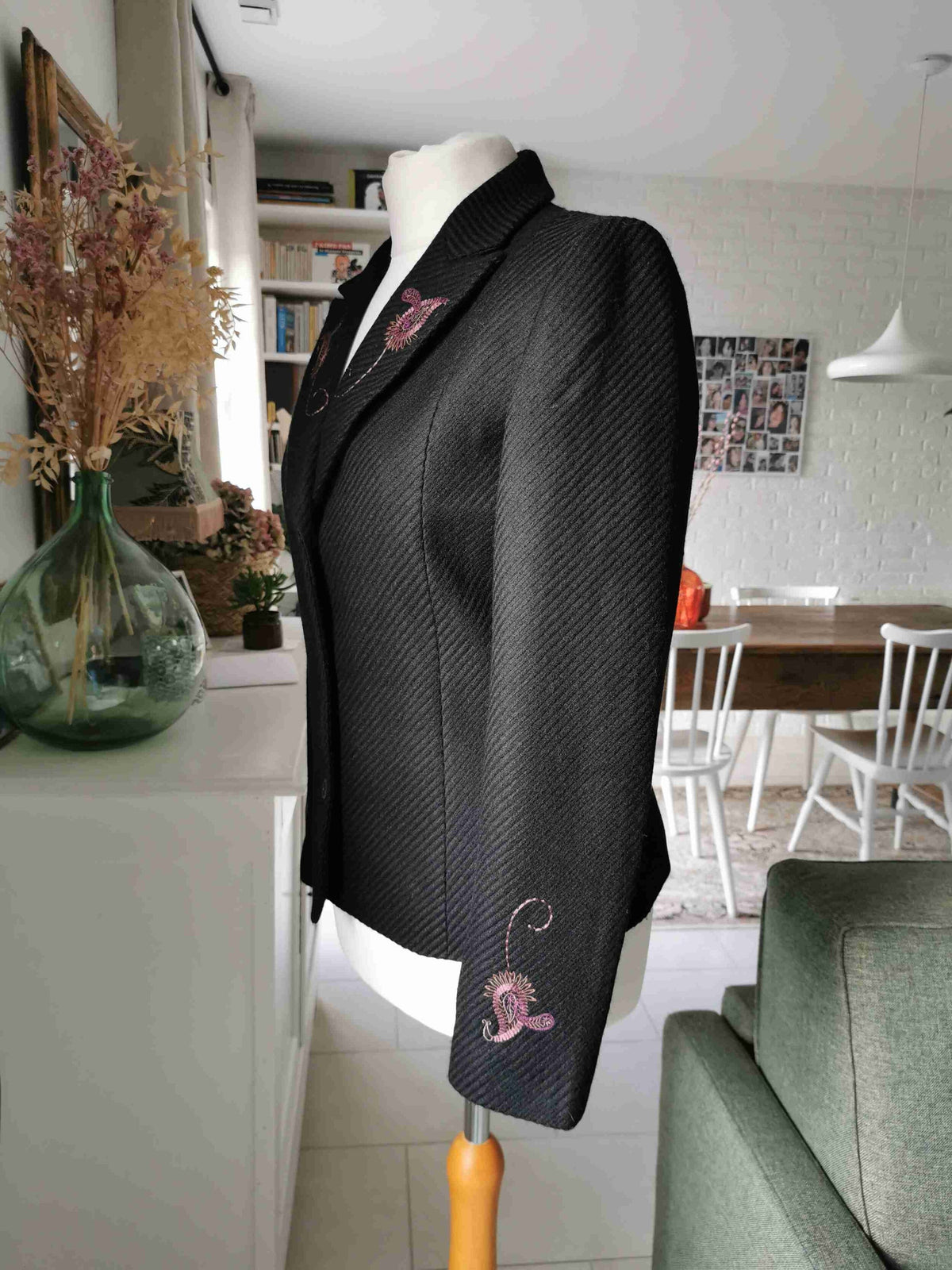 Embroidered on the collar and cuffs