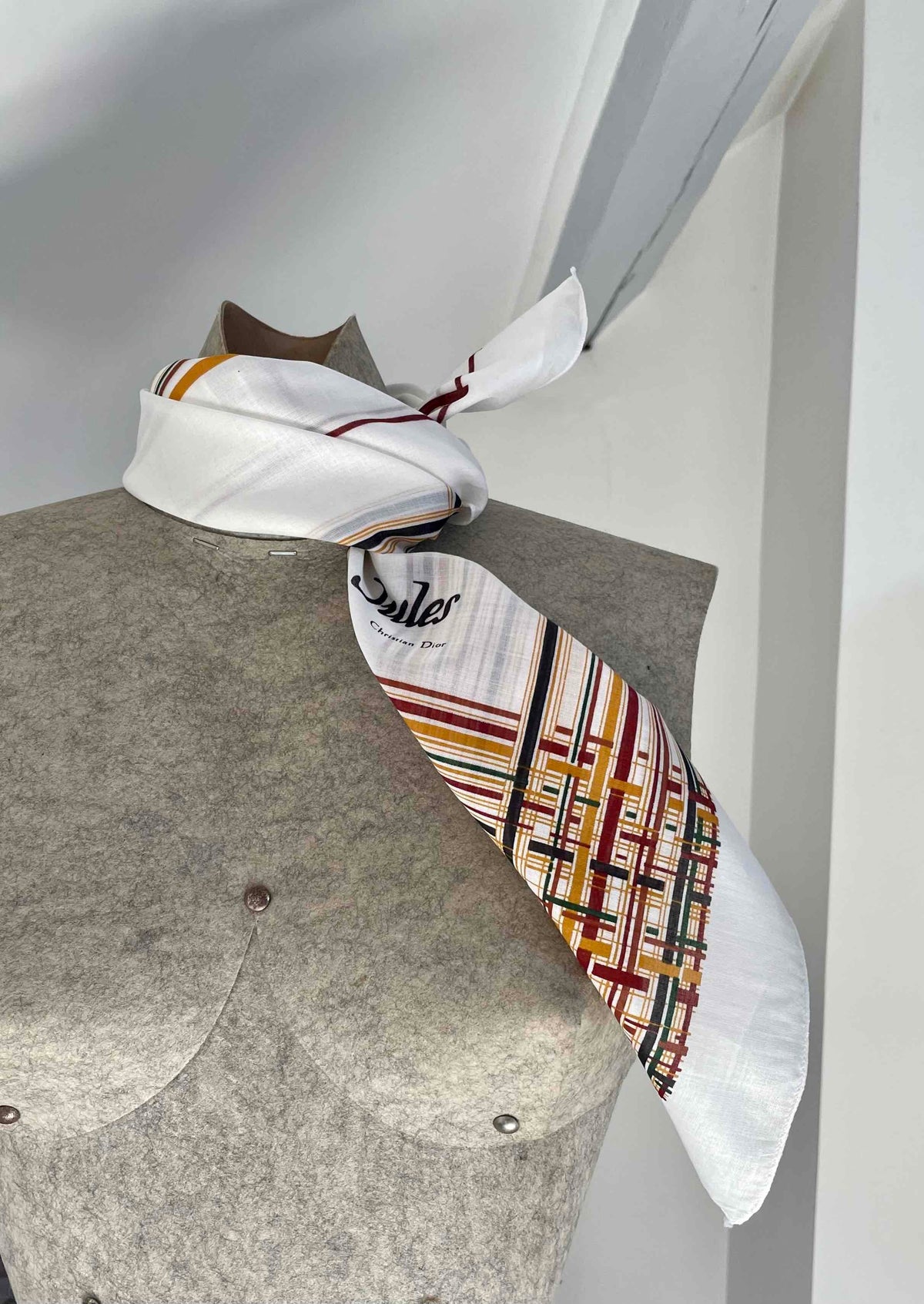Prix unitaire parFoulard Dior en coton. Motifs lignes géométriques. Fabriqué en France.