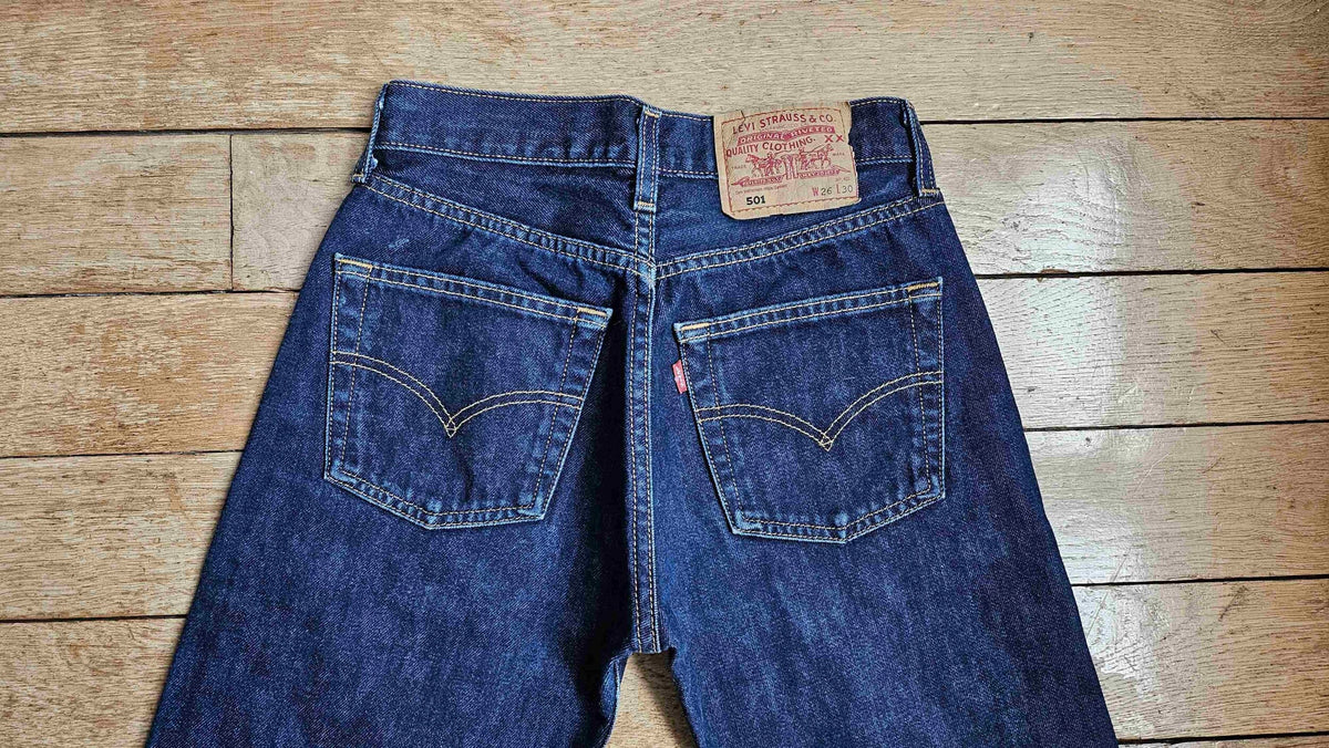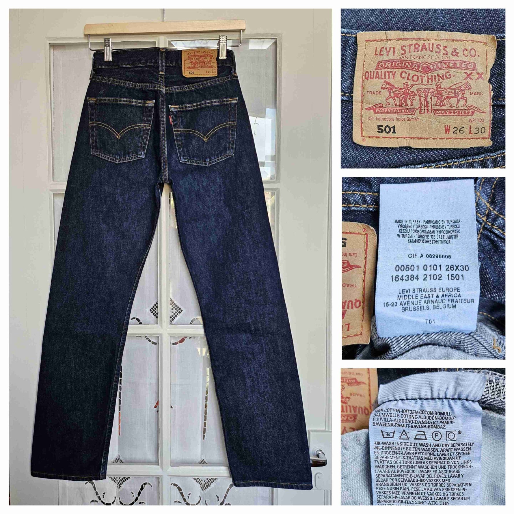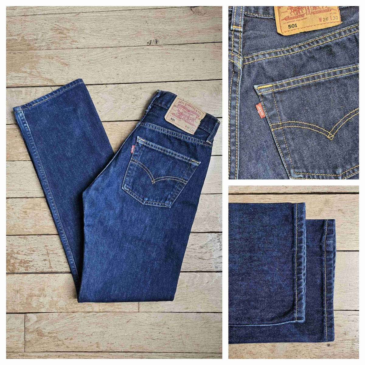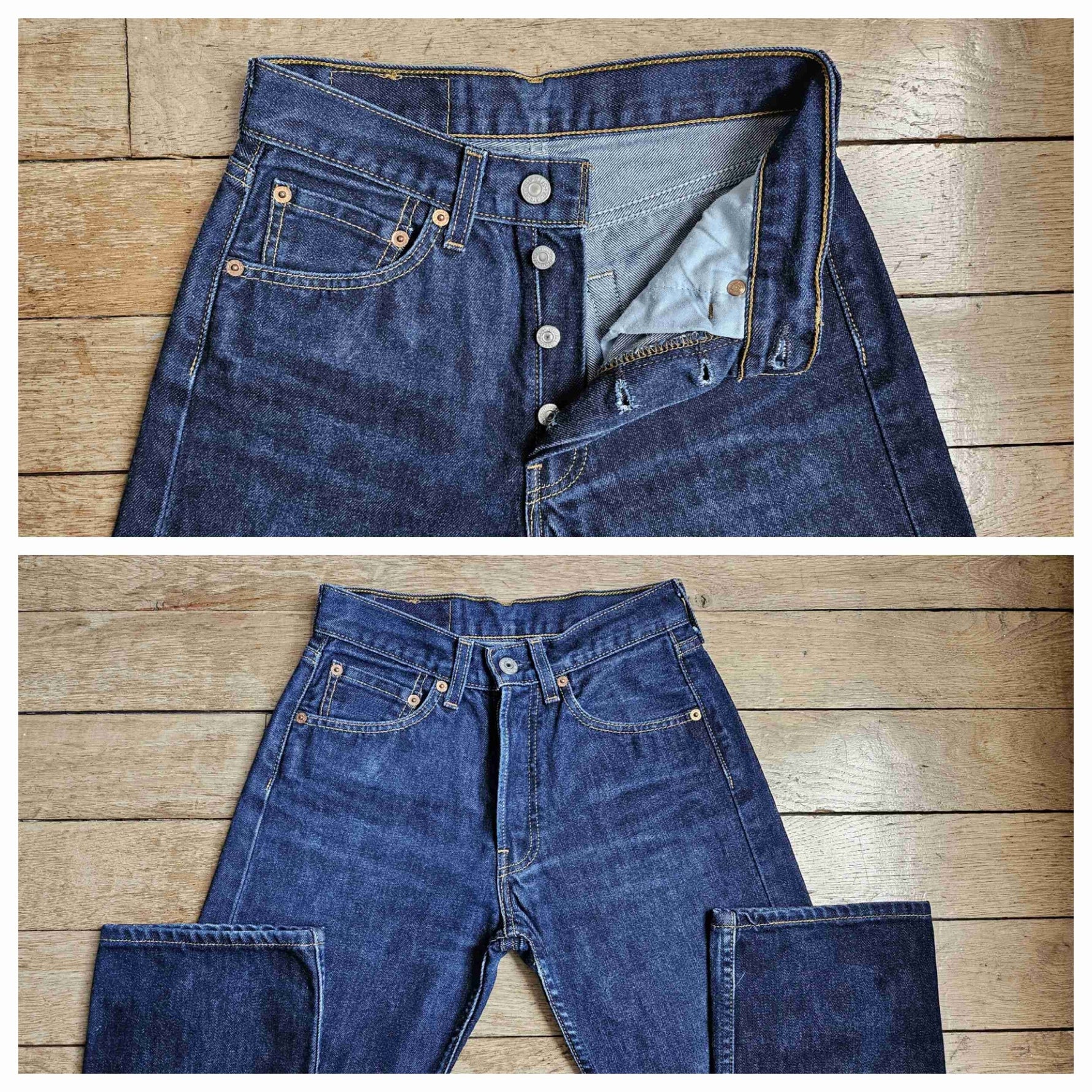 Prix unitaire parLevi's W26 L30 bleu brut. Ourlets d origine. 100% coton. Longueur extérieur jambe 99 cm. Hauteur fourche 26 cm.