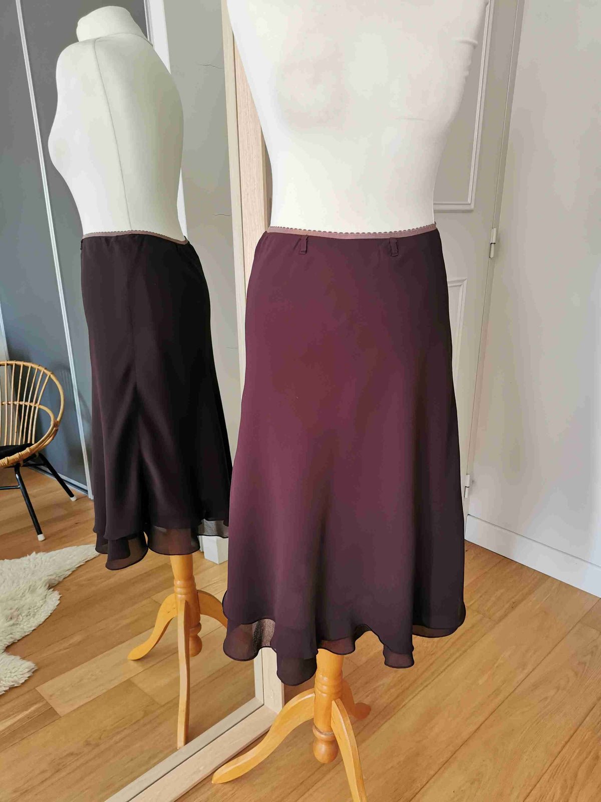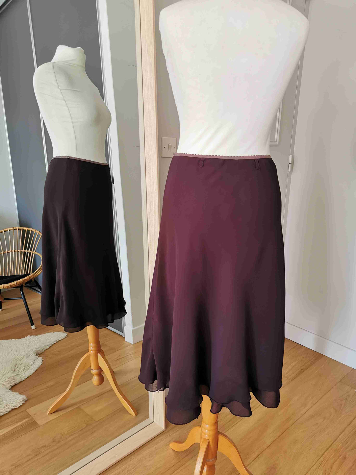 La doublure comme un jupon est de couleur plus claire que le voile bordeaux qui la recouvre.