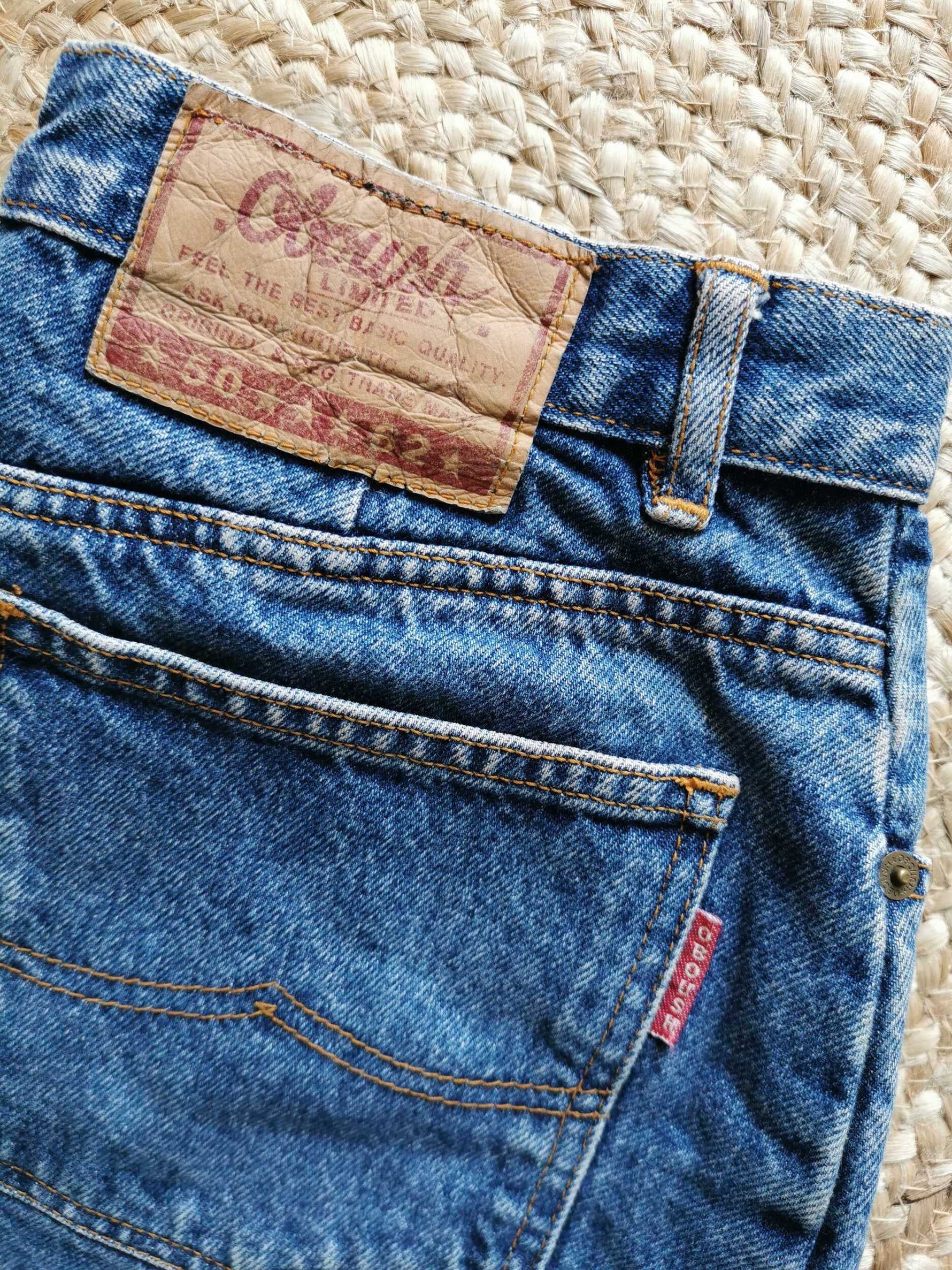 Prix unitaire parJupe courte en jean Oboust, à taille haute et 4 poches, fermeture éclair devant.