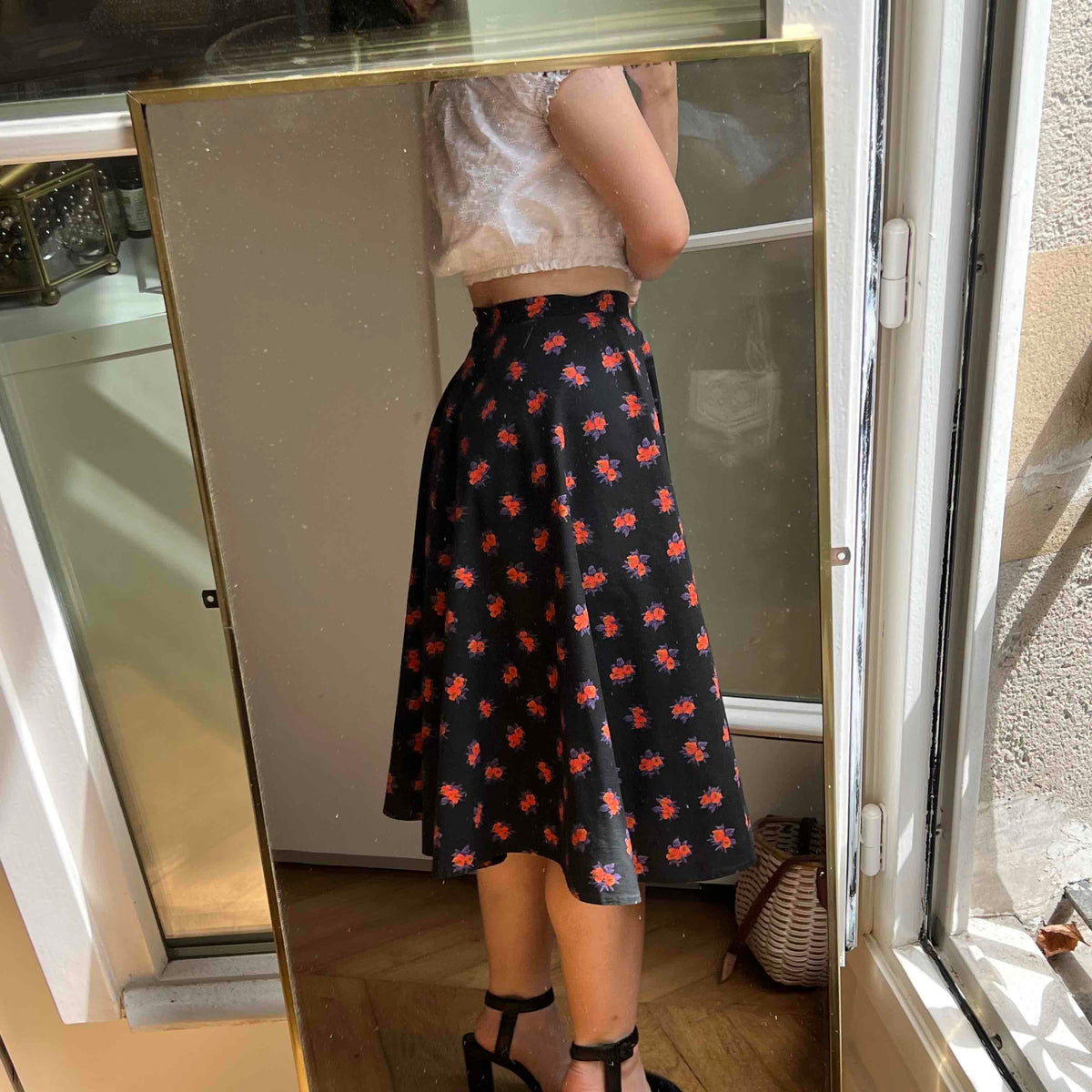 Jupe midi à fleurs
