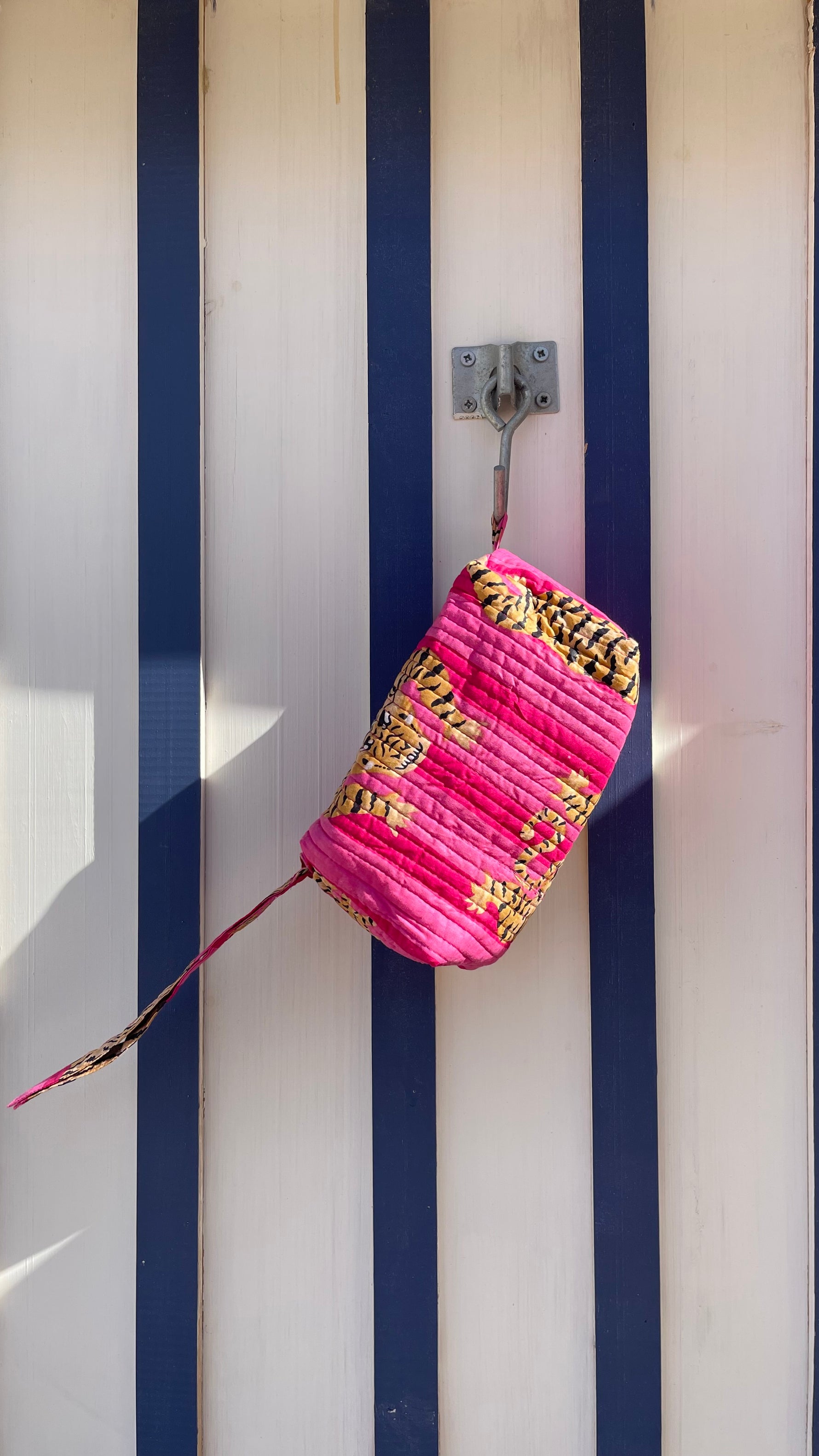 Maxi Trousse de toilette avec 4 petites poches et imperméable Uma en coton matelassé fabriqué en Inde; Dimension : L26cm X H15cm X P12cm