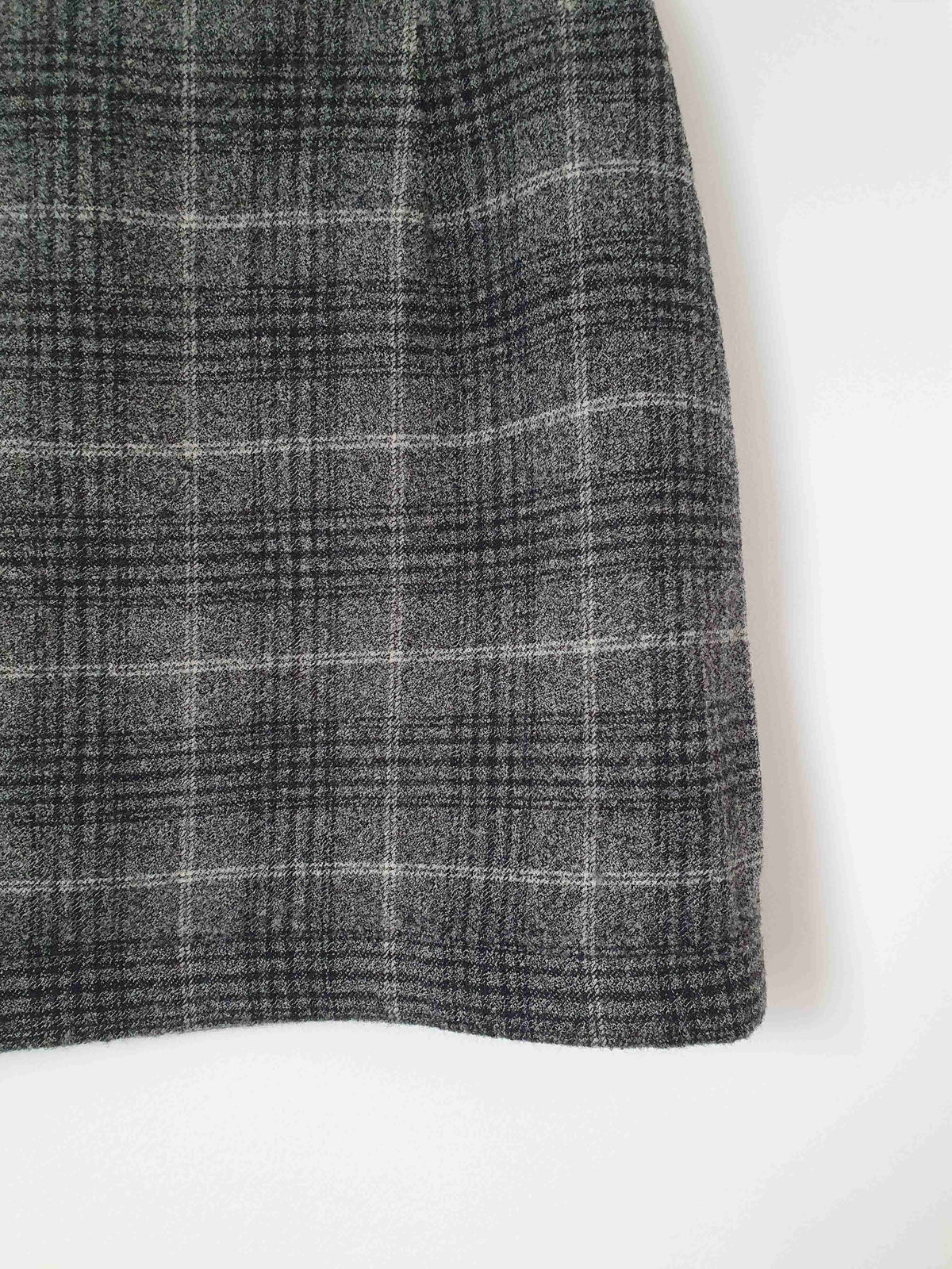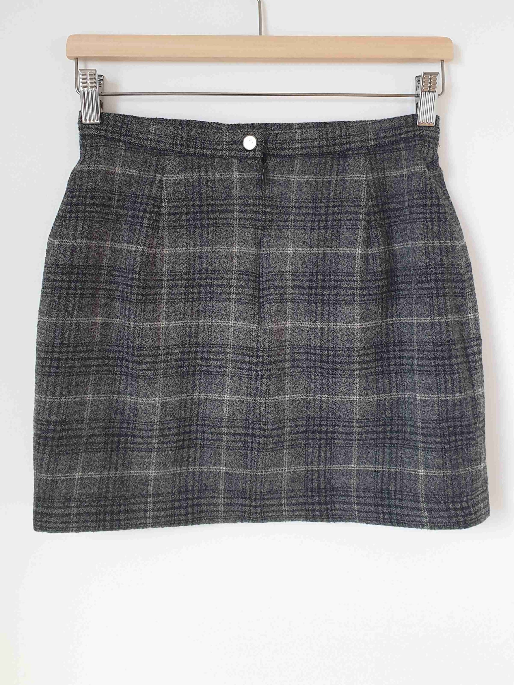 Prix unitaire parMini-jupe Cacharel en laine. Tartan gris et noir. Fermeture éclair et bouton argenté.
