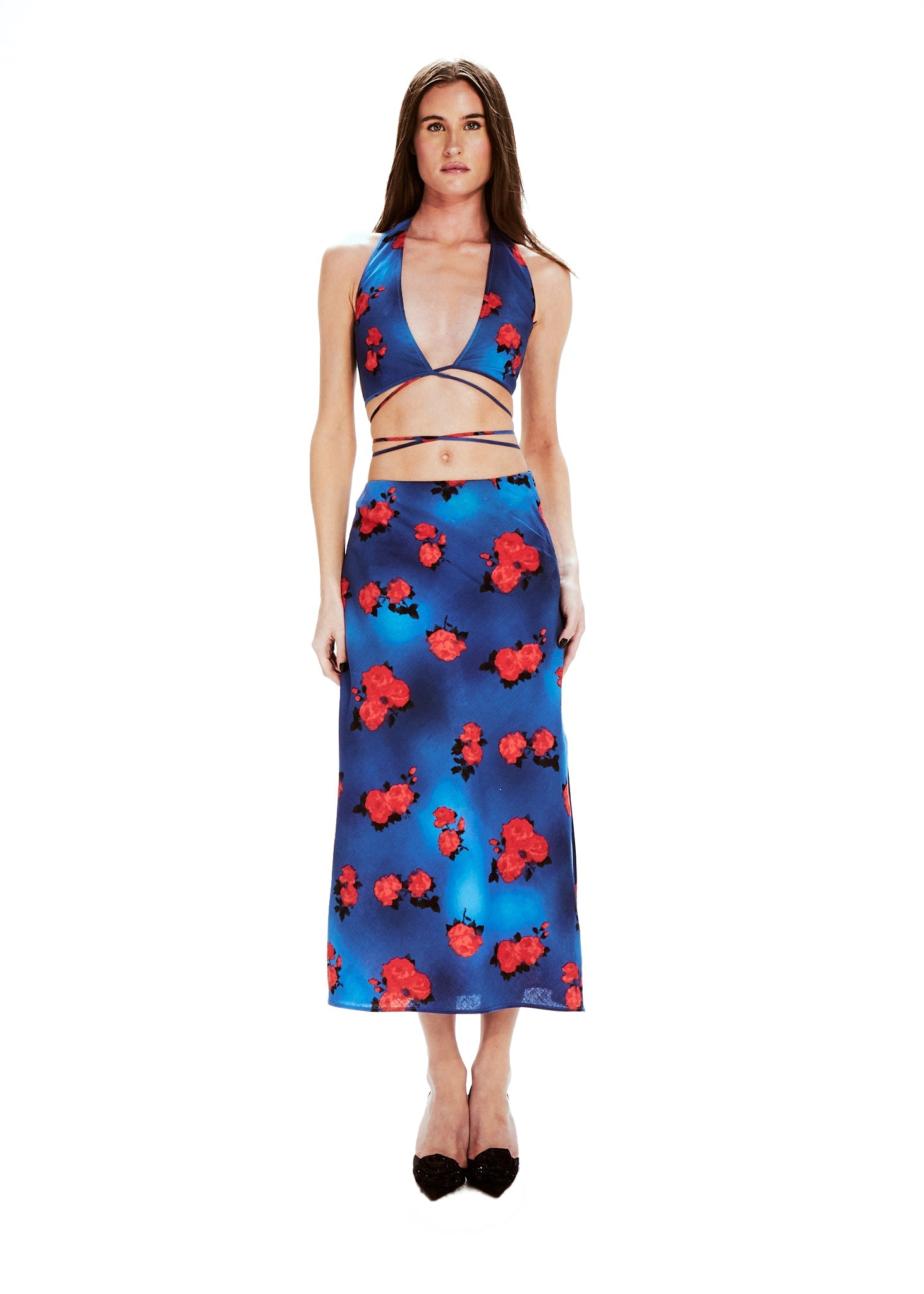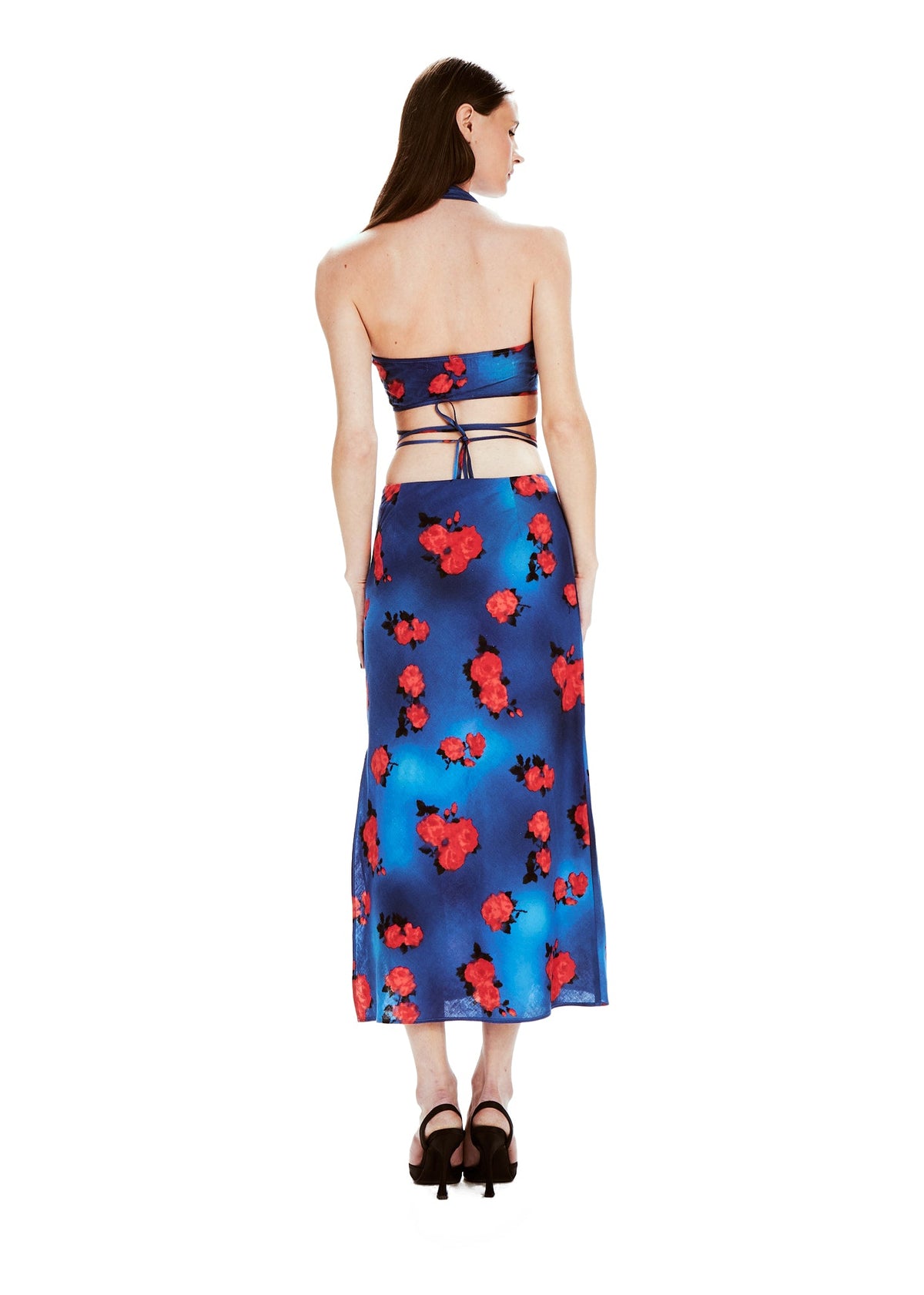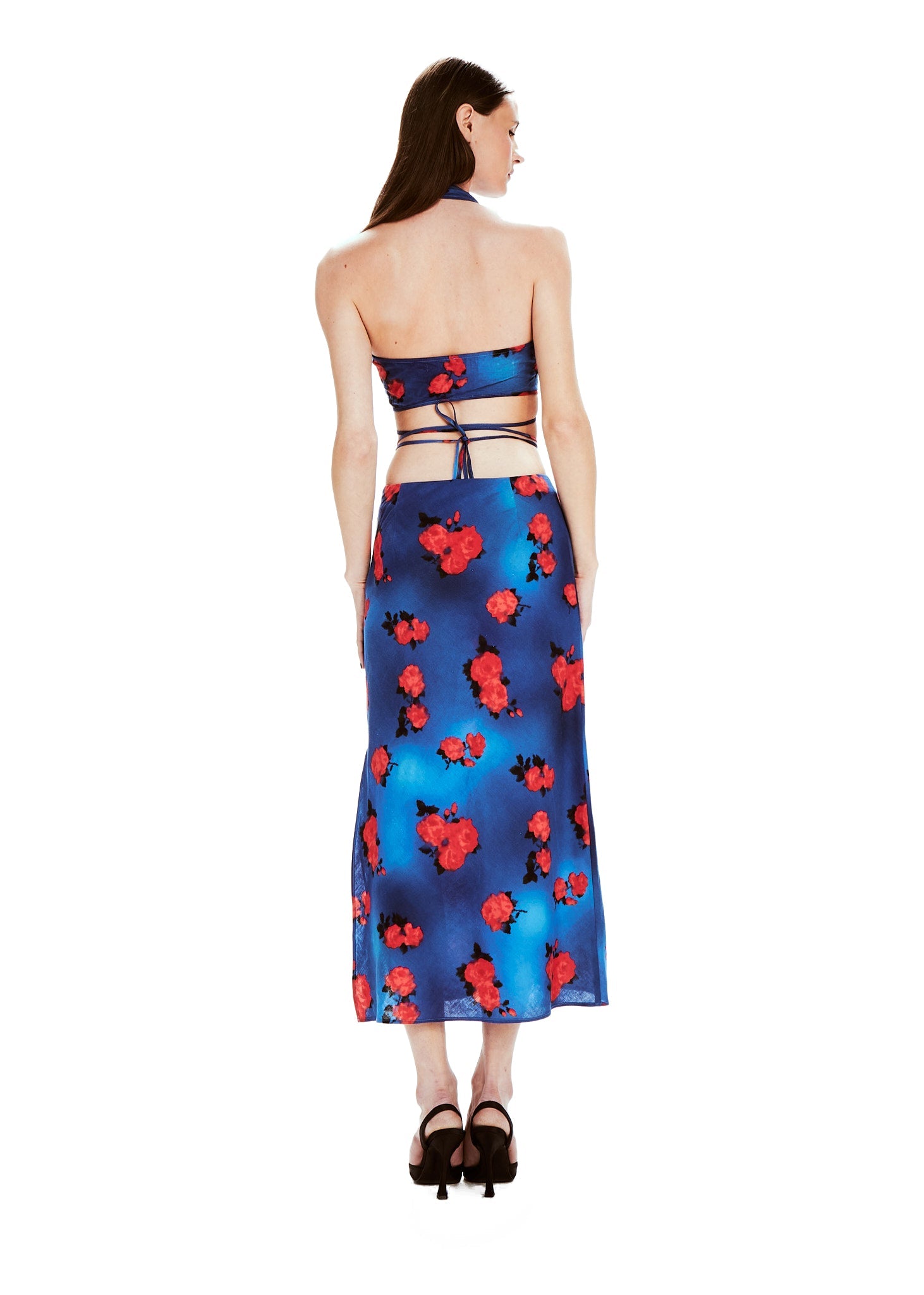 Pia est LE set de cet été, la pièce essentielle dans votre garde-robe. La jupe est coupée en biais, le haut se noue autour de vous pour mettre en valeur votre poitrine et votre taille.
