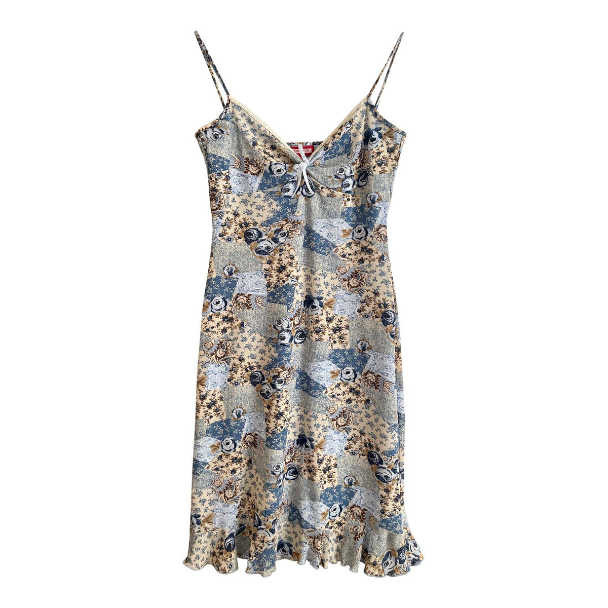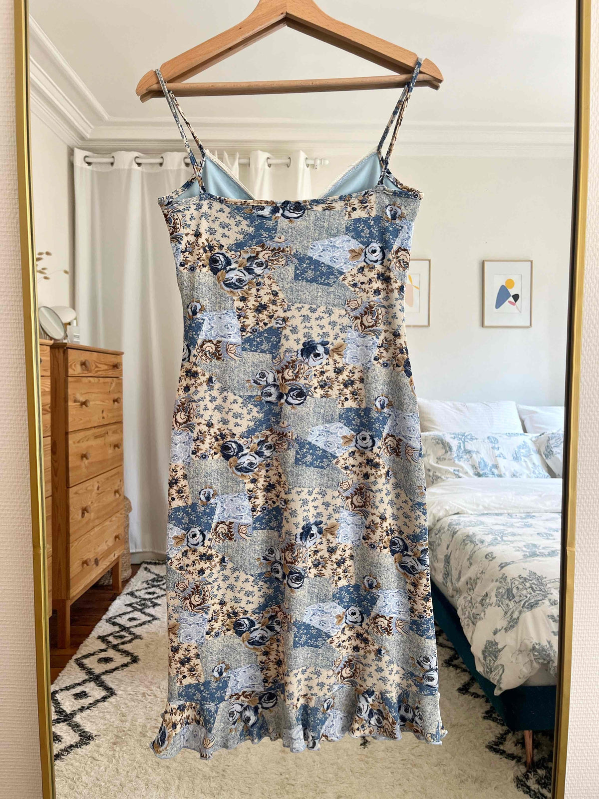 Prix unitaire parRobe patchwork longueur midi, décolleté en dentelle et petit noeud décoratif, bretelles non ajustables, tissu stretch doublé. Portée ici sur une T36 pour 1m64.