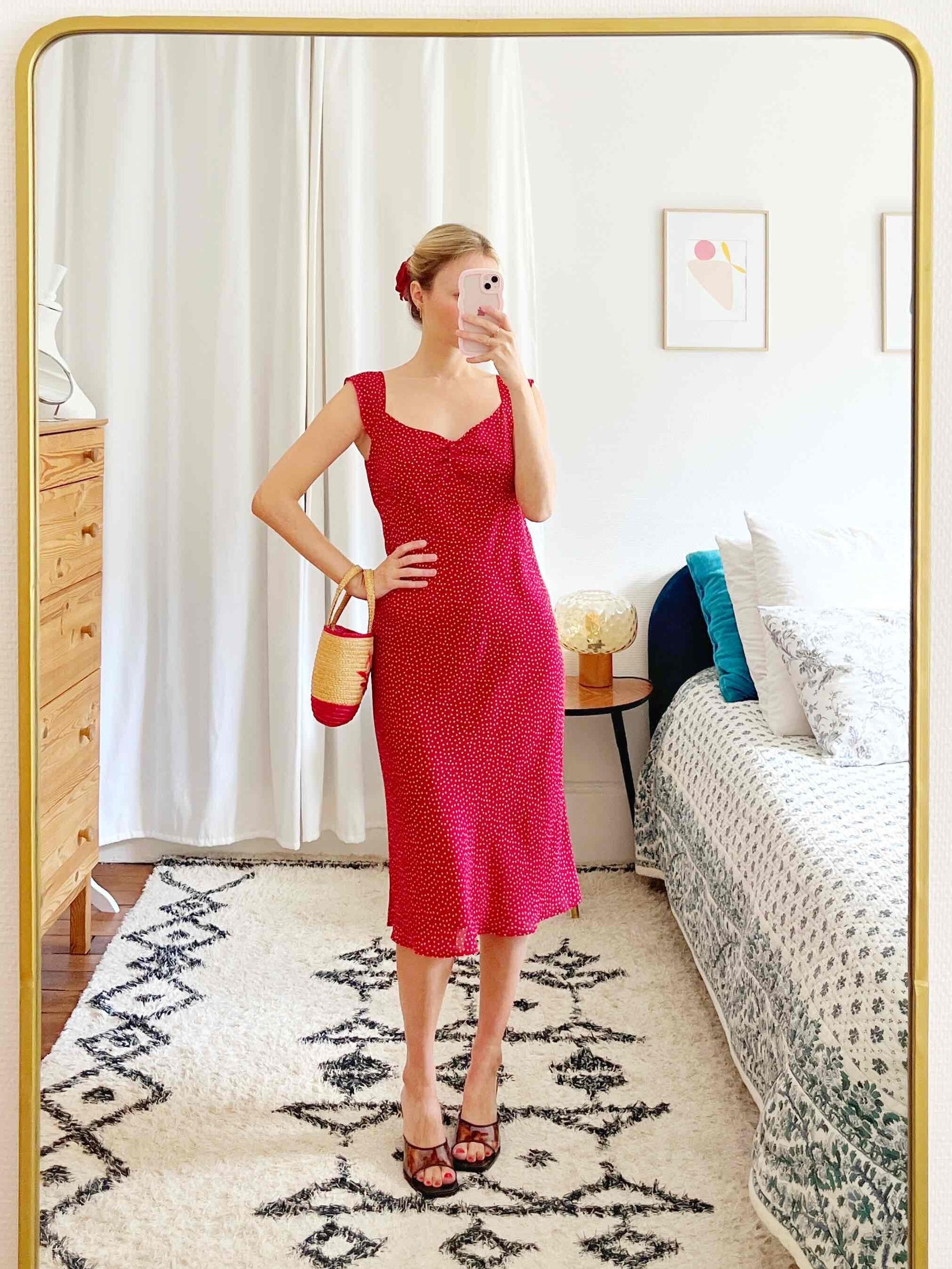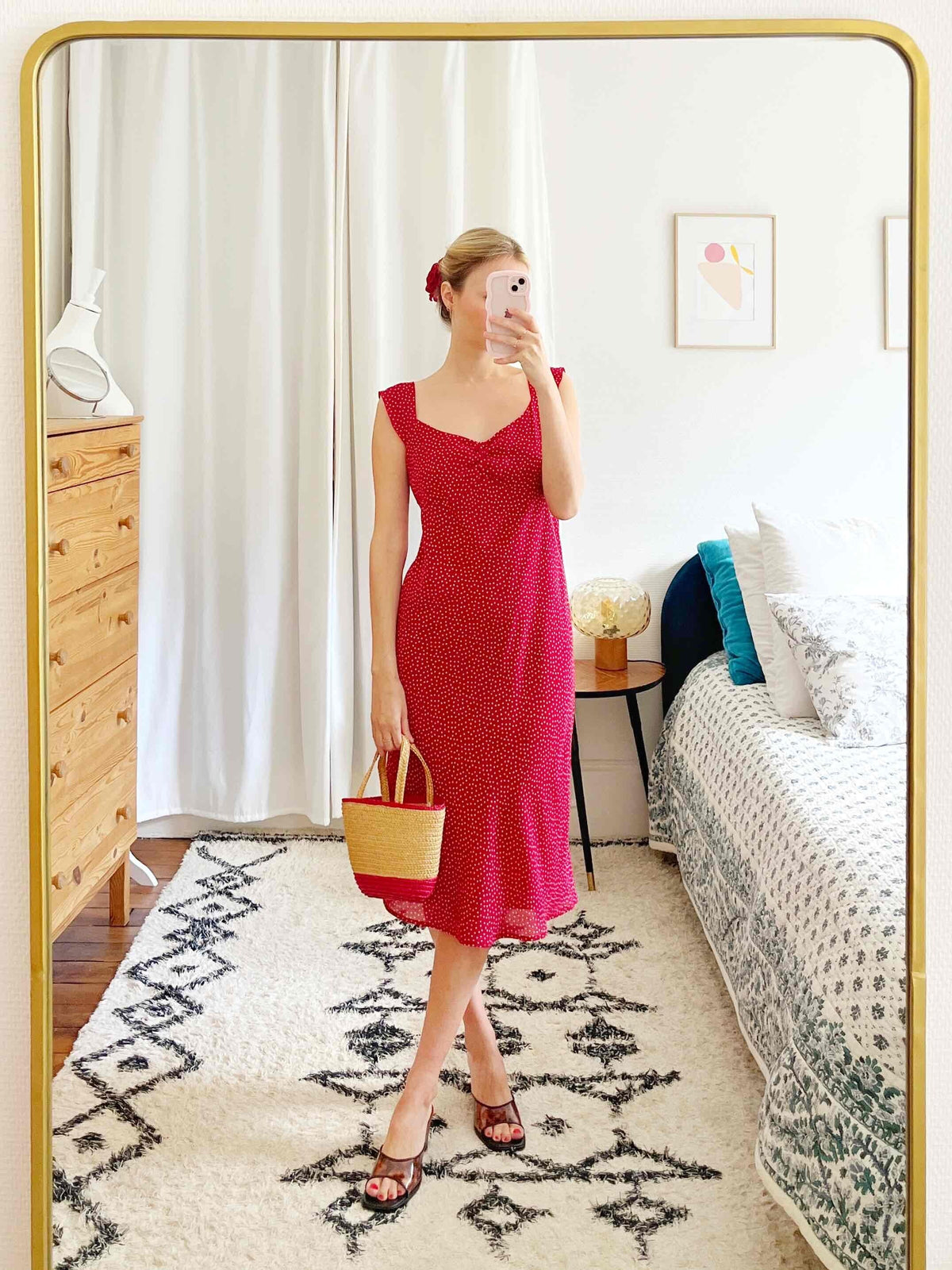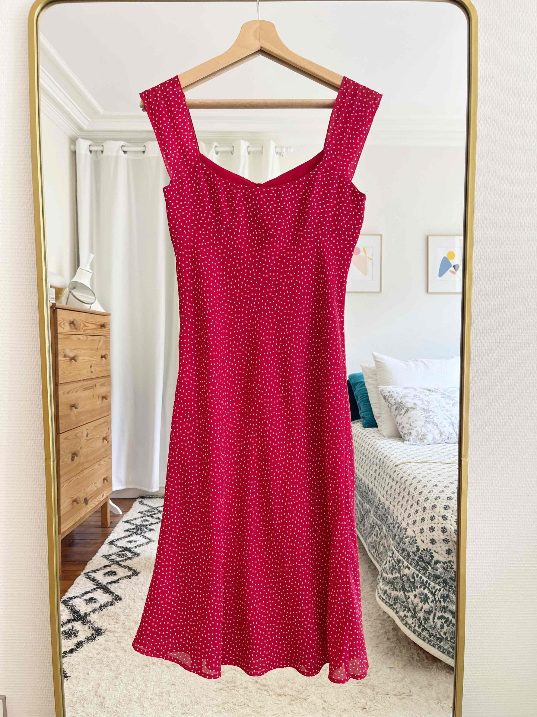 Prix unitaire parRobe à pois, longueur midi, tissu doublé non stretch.