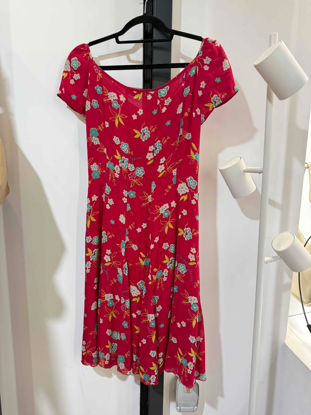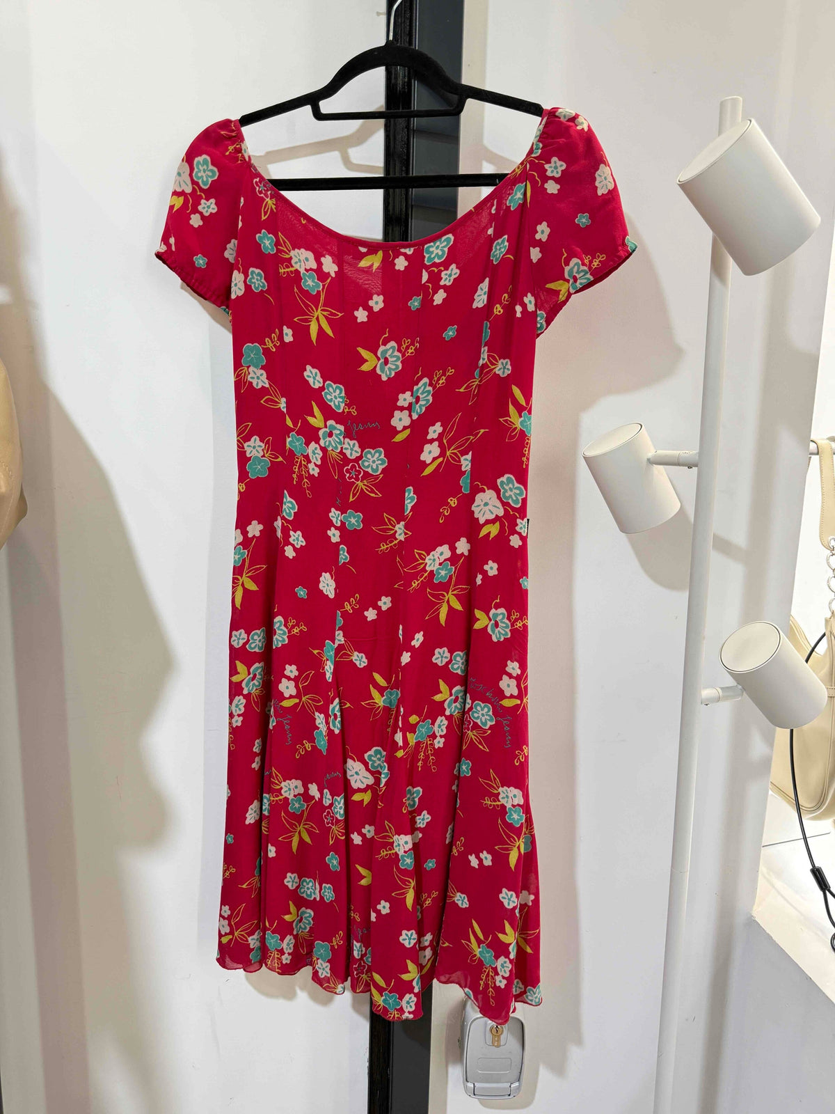 Prix unitaire parRobe midi vintage en viscose rose intense avec un motif de fleurs de la marque