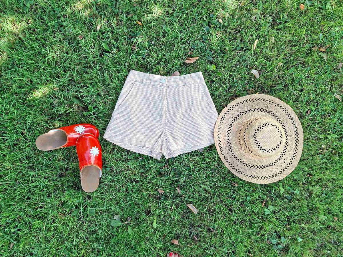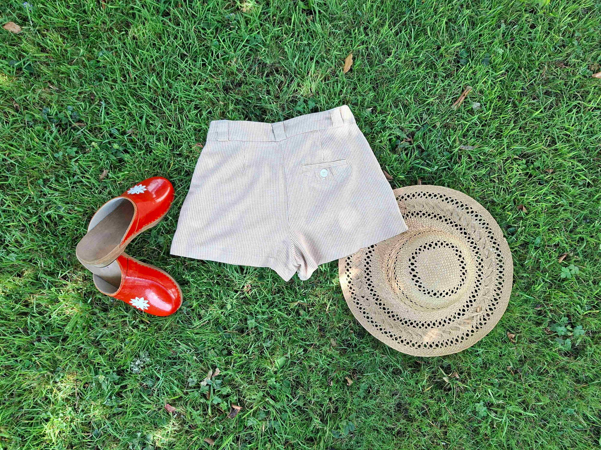 Prix unitaire parShort vichy vintage 00’s en lin et viscose camel et écru