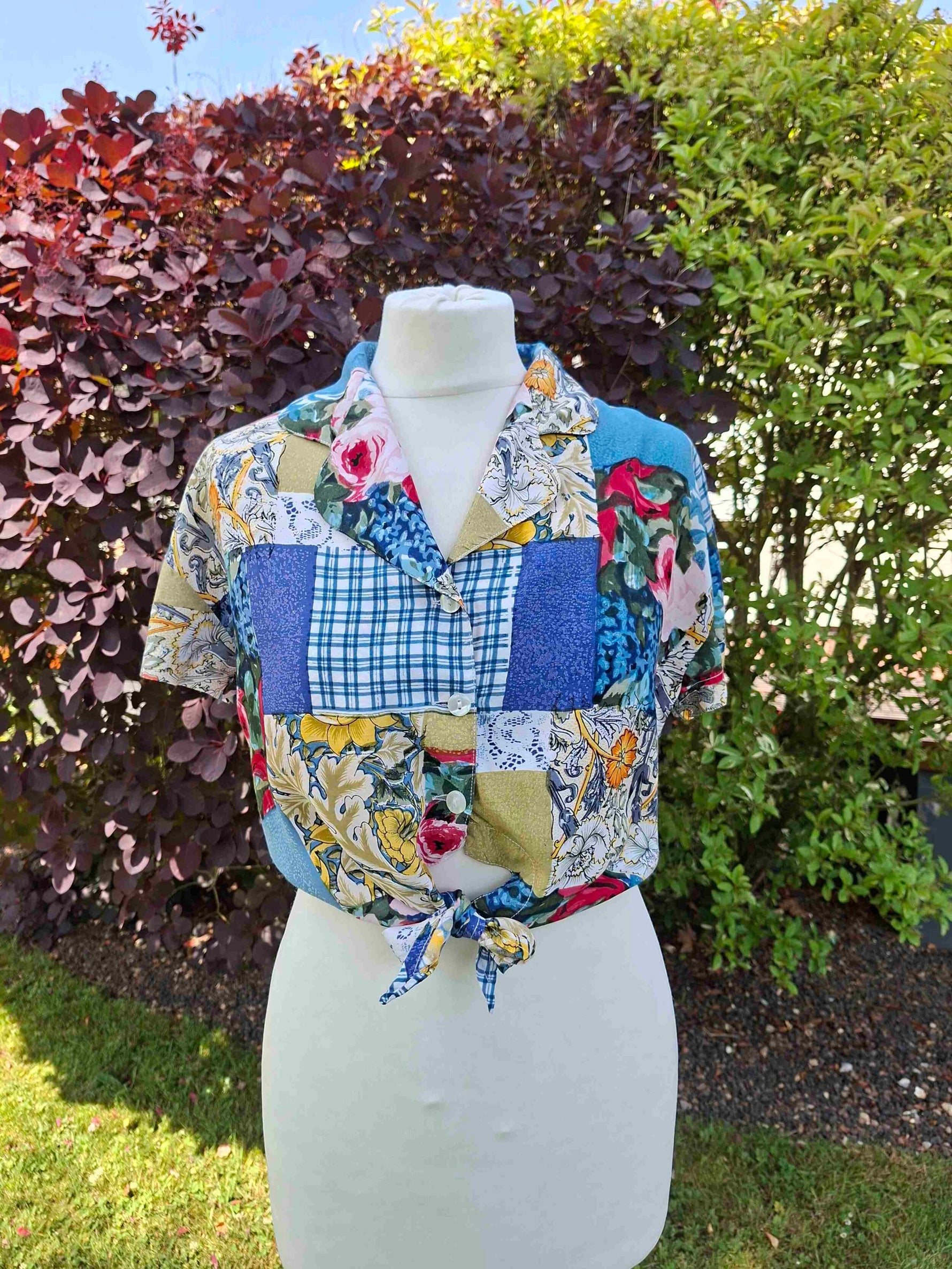 Prix unitaire parCrop top patchwork à fleurs et à carreaux vintage 80's